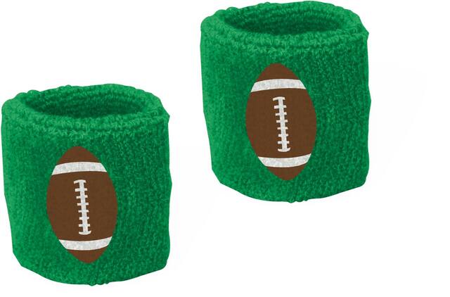 These green wristbands feature a brown football stitched in the center