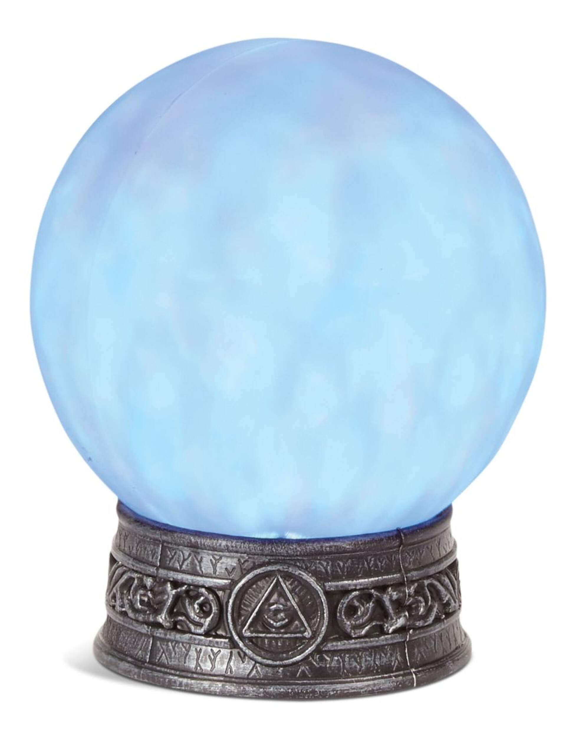 Become a fortune teller at your next Halloween party with this For Living Animated Crystal Ball. It features lights and sounds for spooky effects as you impress your holiday guests. This Halloween crystal ball features a metallic-look base with etched symbols for authentic creepy style. Use this animated crystal ball to wow party guests and trick-or-treaters, or to help take your Halloween and haunted house displays to the next level.