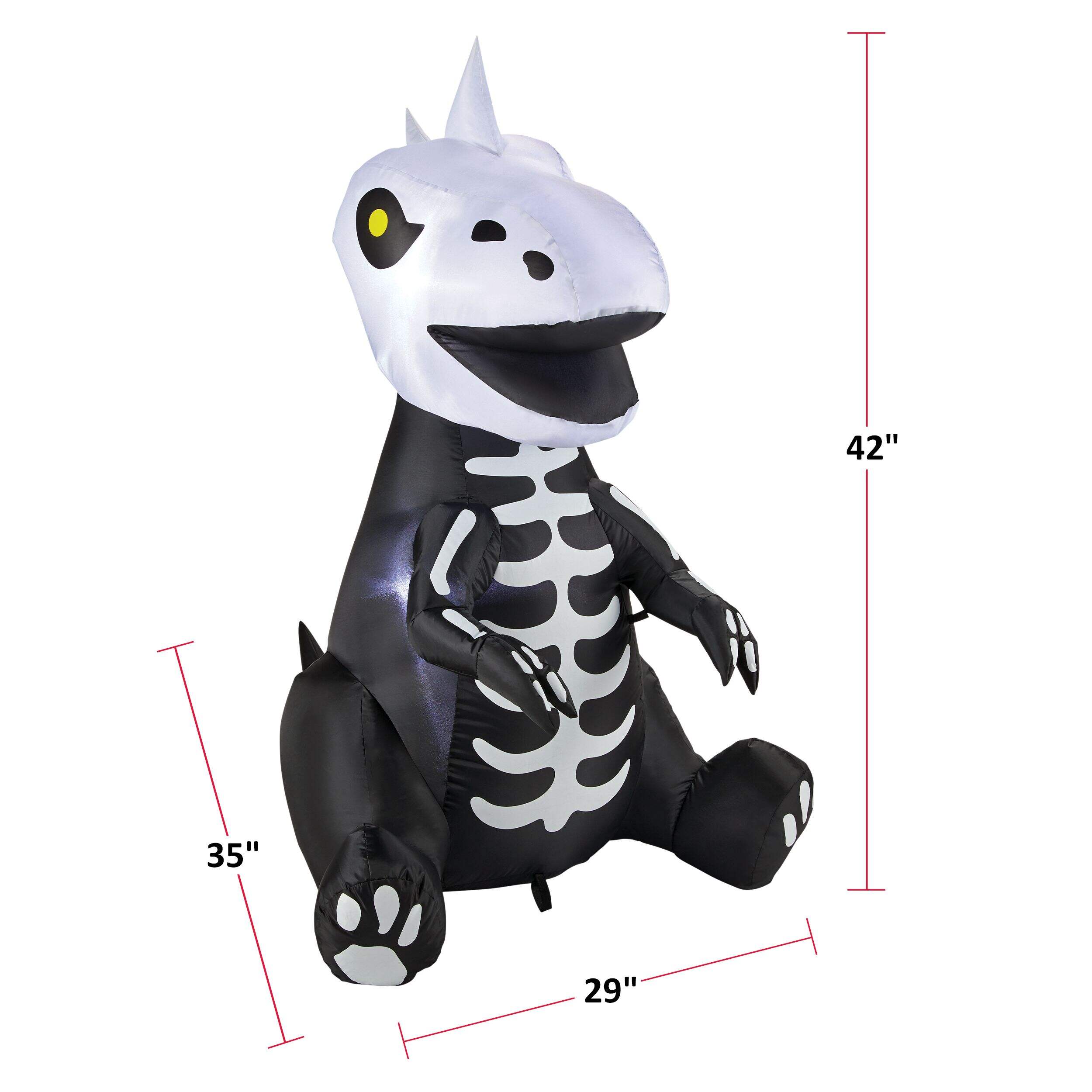 For Living Dinosaur Skeleton LED Light-Up Airblown Inflatable with Stakes, Self Inflating Outdoor Decoration for Halloween, Black/White, 3.5-ft