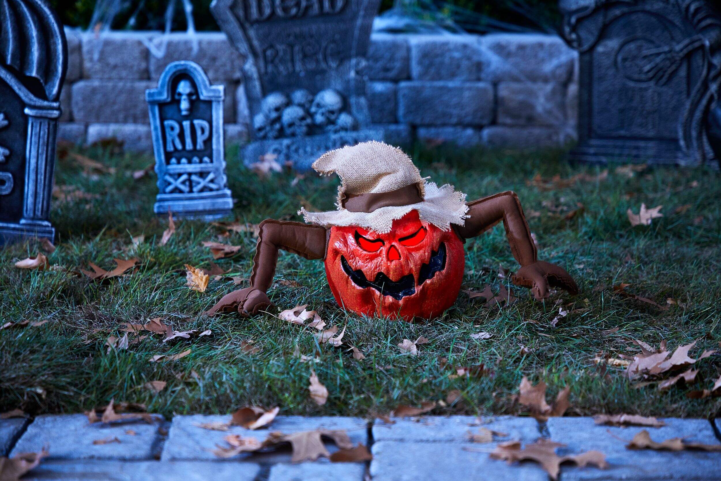 The For Living Evil Walking Pumpkin is a sound-activated decoration that lights up with 2 red LED lights