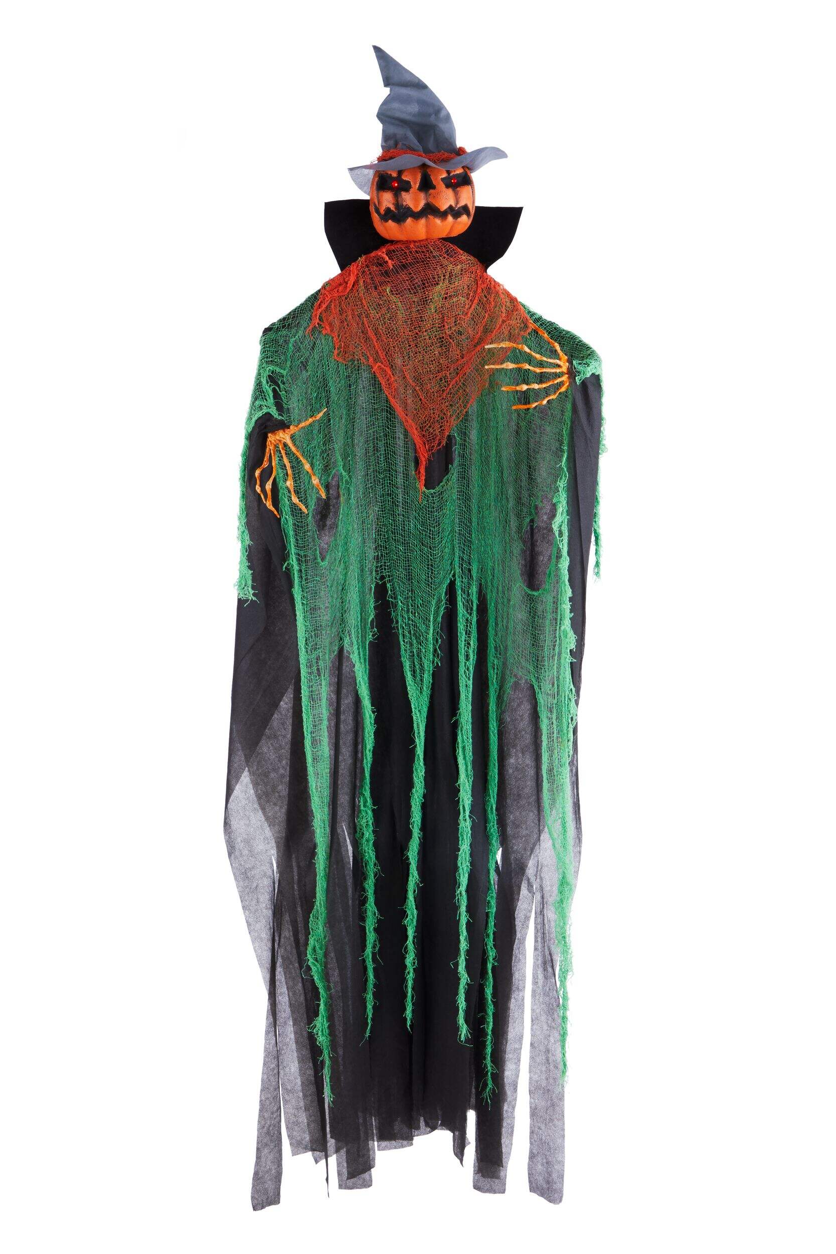 Display the For Living Light-Up Hanging Pumpkin in your doorway, alcove, or basement to get a fright from trick-or-treaters or your guests this Halloween. Featuring two creepy glowing red, energy-efficient LED lights, this grinning hanging pumpkin also comes with a tattered floating cloak that moves at the slightest breeze. Made for indoor use, this Halloween pumpkin decor is battery operated, so you don’t have to worry about cumbersome power cords ruining the Halloween mood.