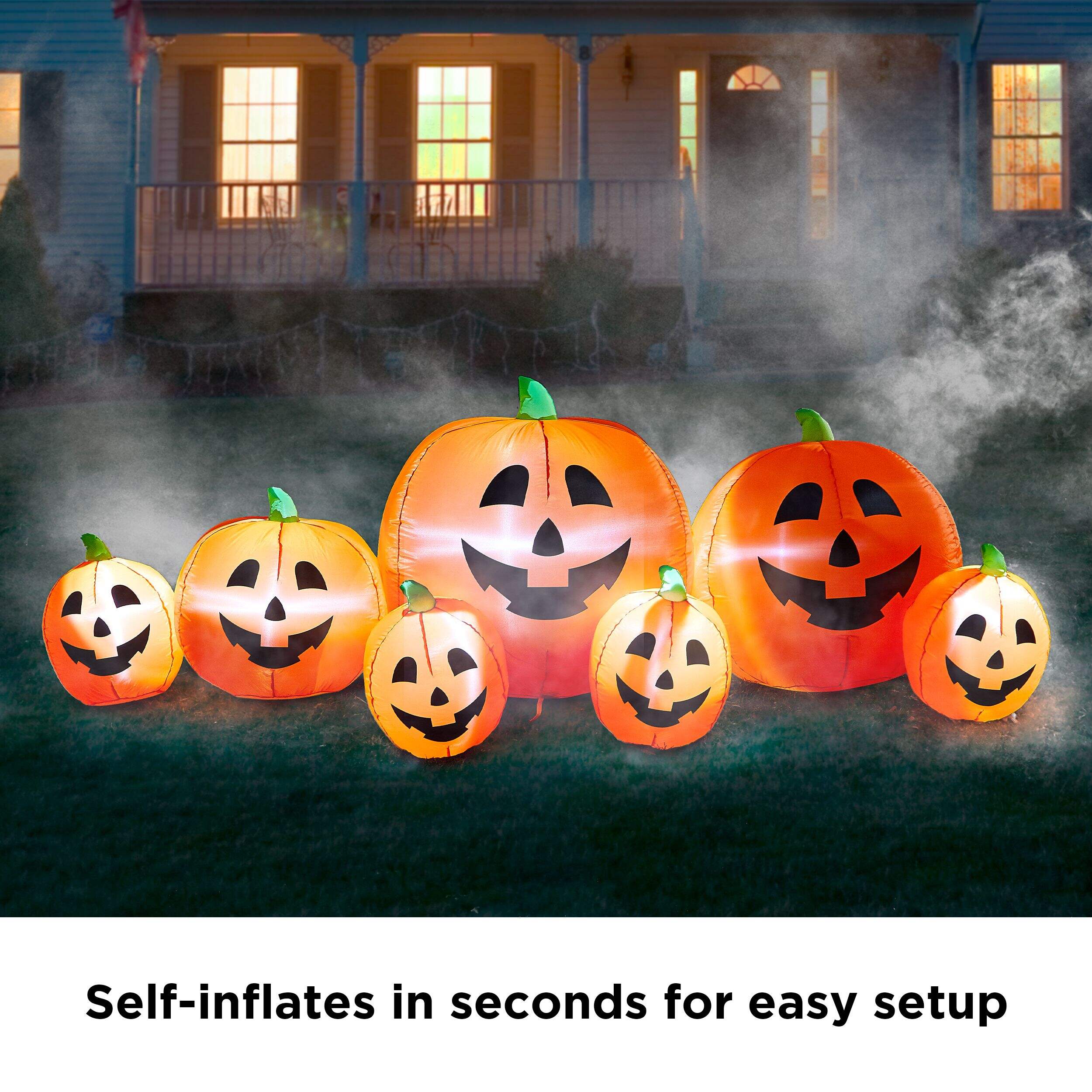 This For Living Inflatable Pumpkin Patch is 8-ft long and inflates in minutes for easy seasonal style. This family friendly decoration is a great way to dress up your home or outdoor space for Halloween and is equally easy to store in the off season.