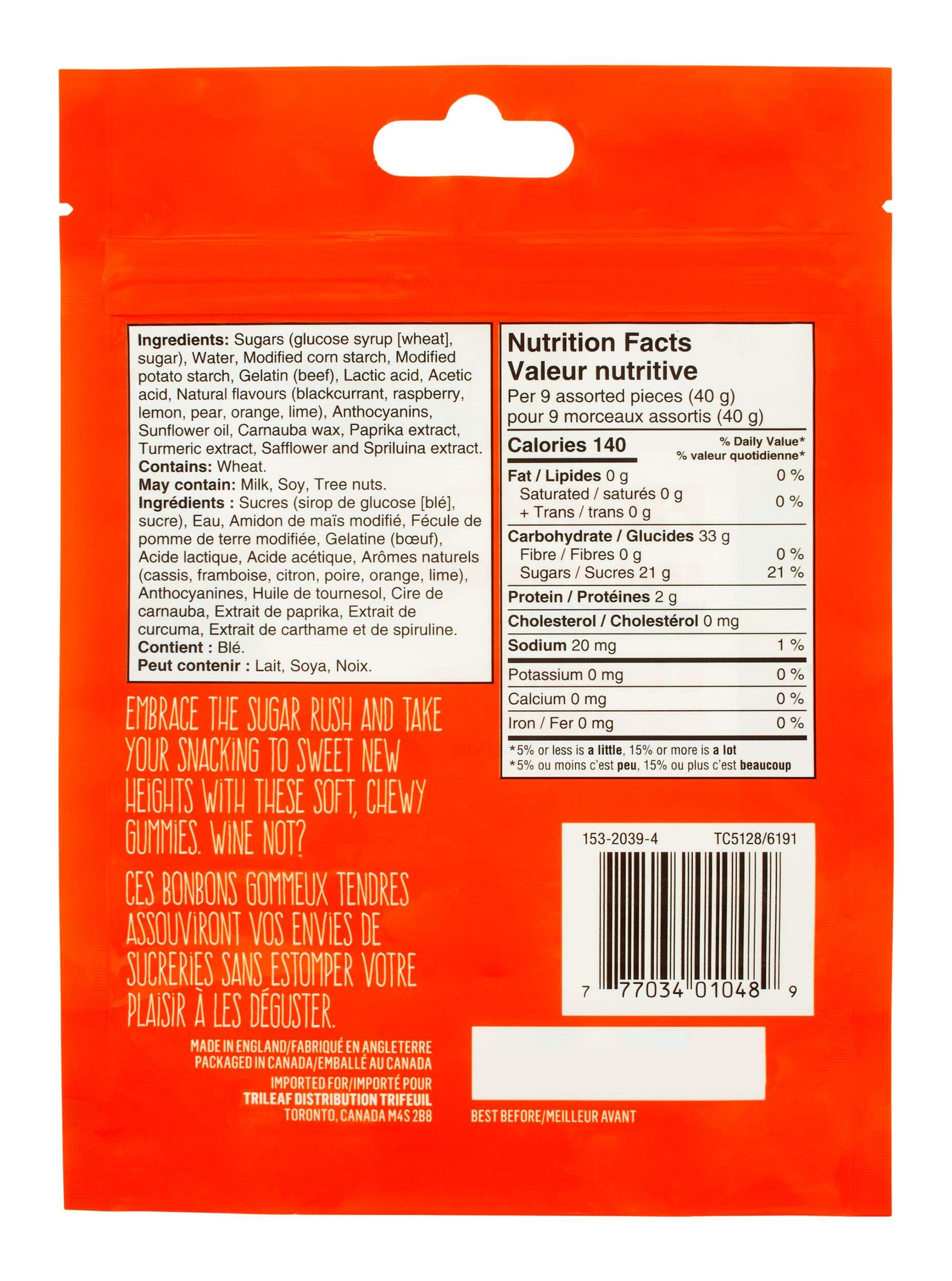The FRANK All Natural Wine Gums Candy, 200-g, is a perfect treat for wine lovers. Made with all-natural flavours and colours in a soft and chewy texture, these wine gums allow you to enjoy the taste of a good vintage without all the bother of opening a bottle. Simply pop one in your mouth and enjoy the subtle yet complex flavours that will transport you straight to a vineyard. Keep a pack on hand for when you need a burst of flavour and sophistication that only wine gums can provide.