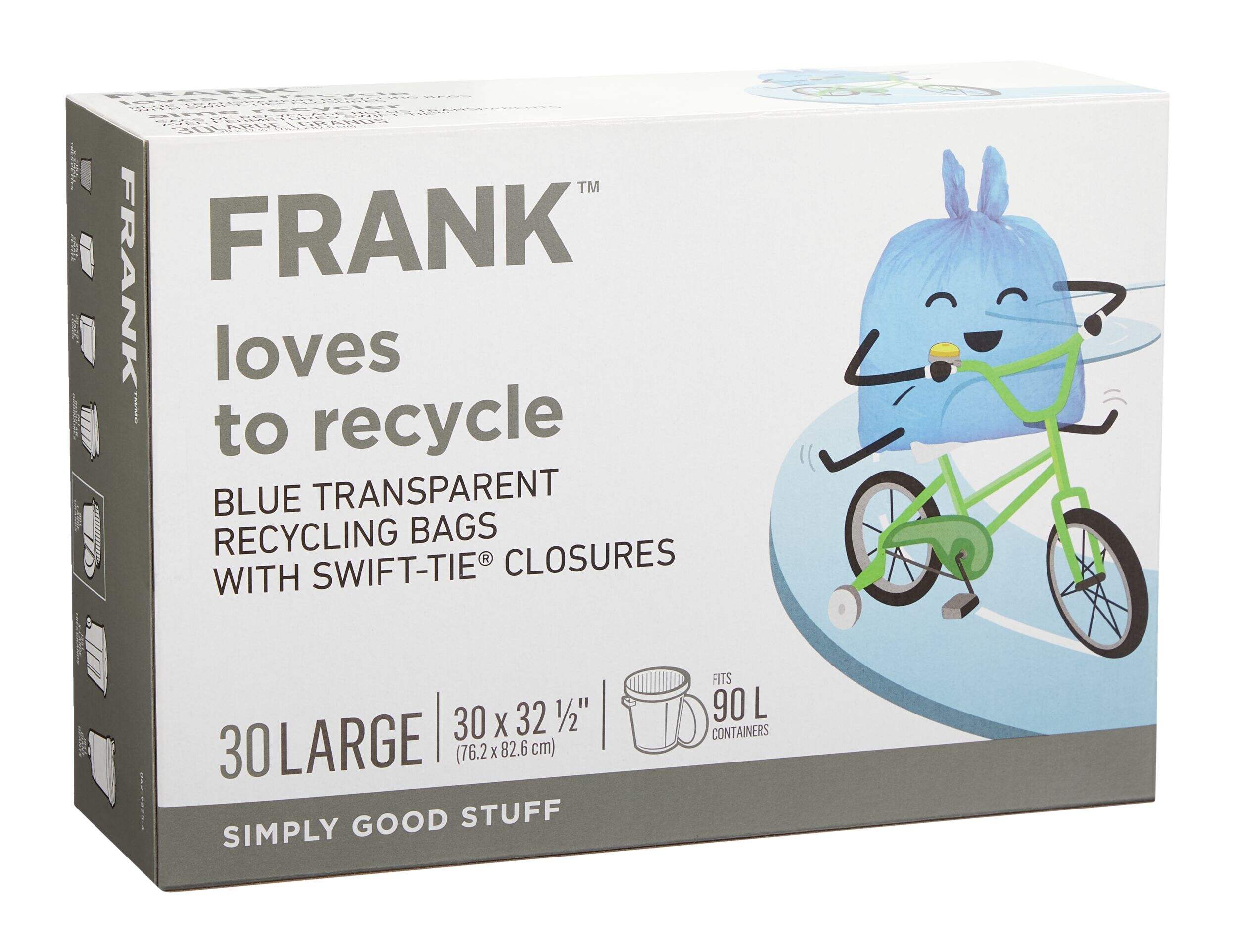 The FRANK Large Swift-Tie Blue Transparent Recycling Bags offer a practical and efficient solution for managing your recyclables. Each bag is made from durable polyethylene, ensuring they can handle heavy loads without tearing. With 30 bags per pack, you’ll be well-equipped to tackle your recycling tasks while contributing to a cleaner environment. Plus, these bags come with a 1-year warranty, showcasing their durability and reliability for all your recycling needs.