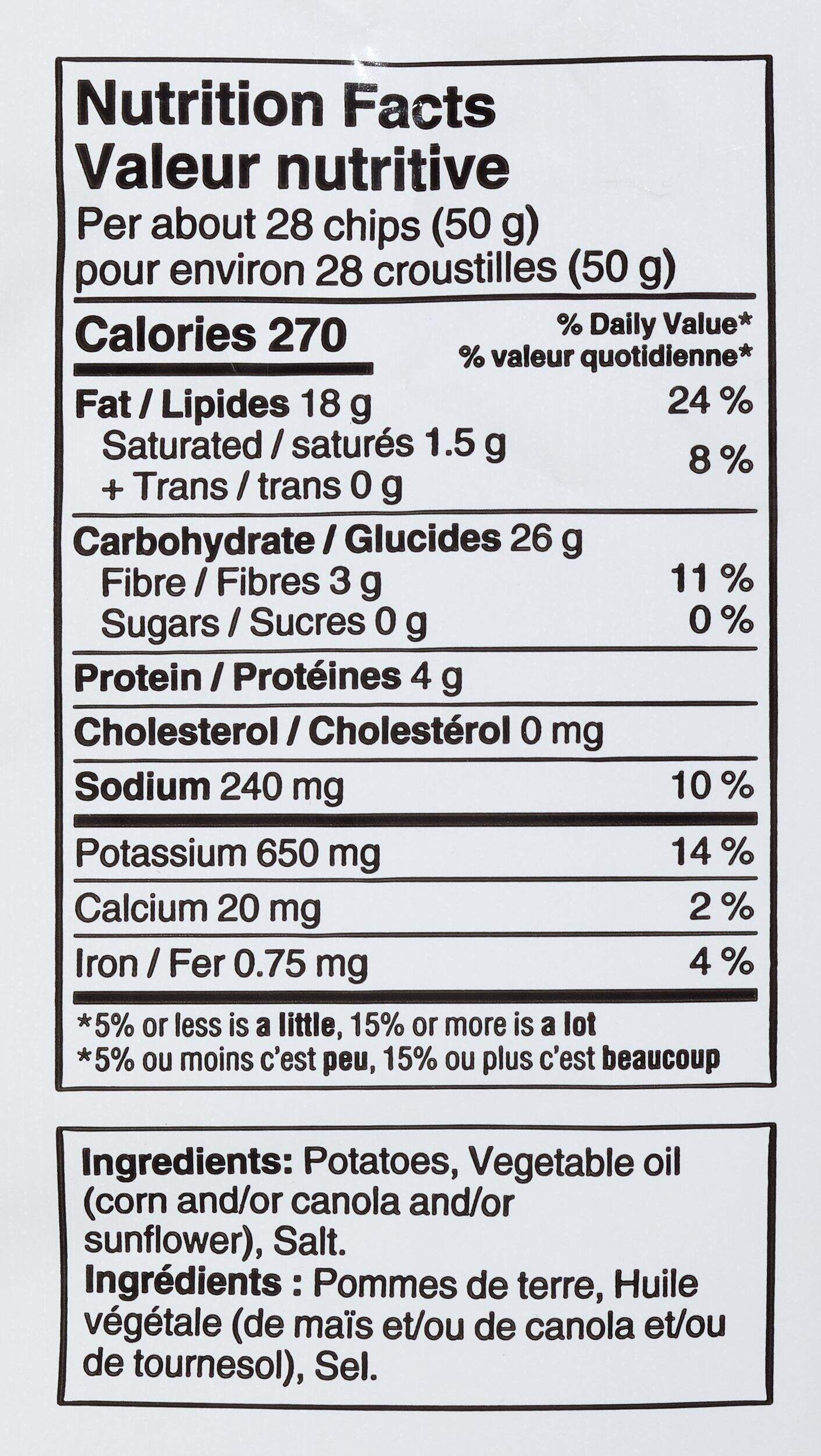 Ingredients: Potatoes, vegetable oil (canola and/or sunflower and/or corn), salt