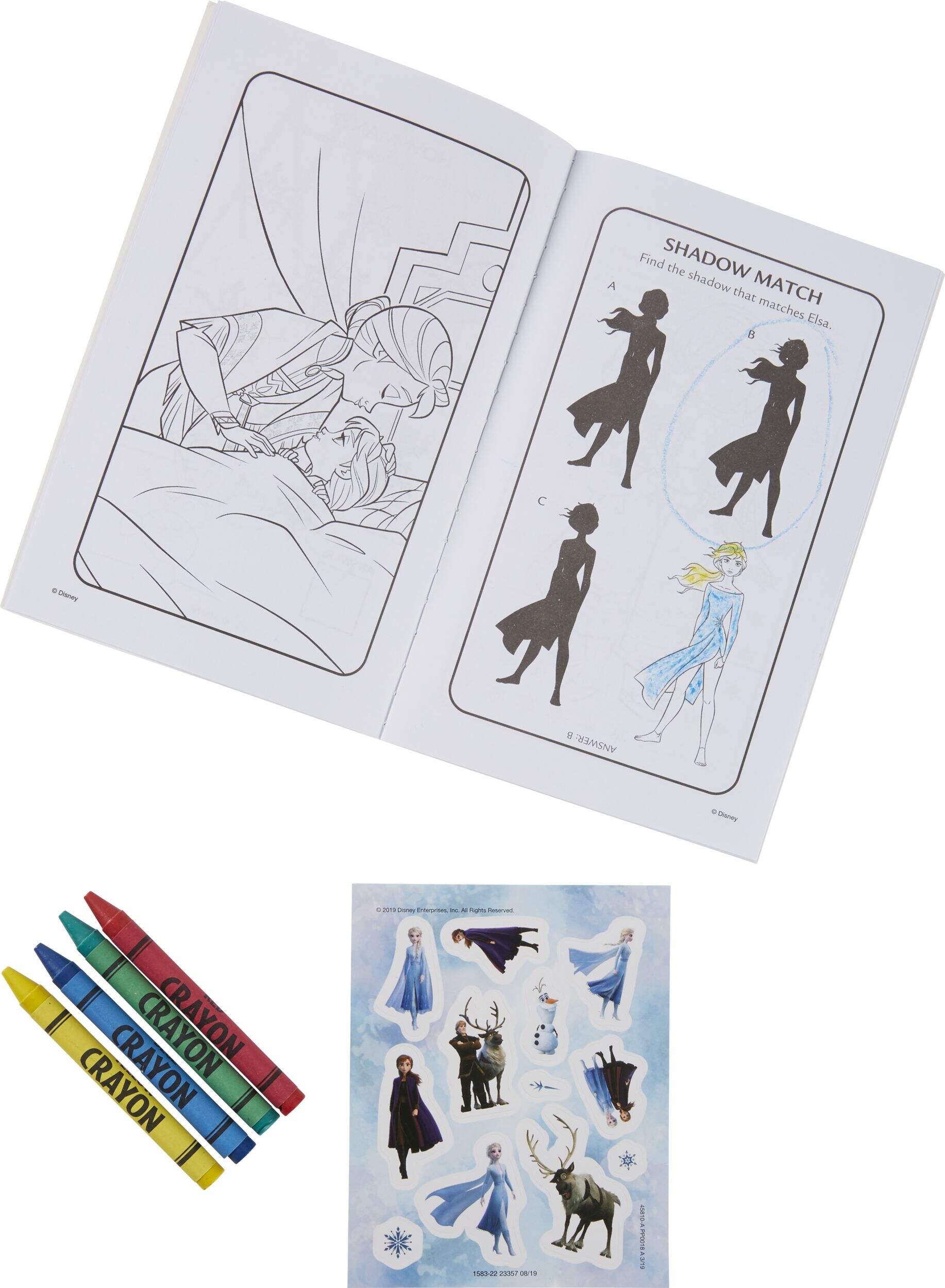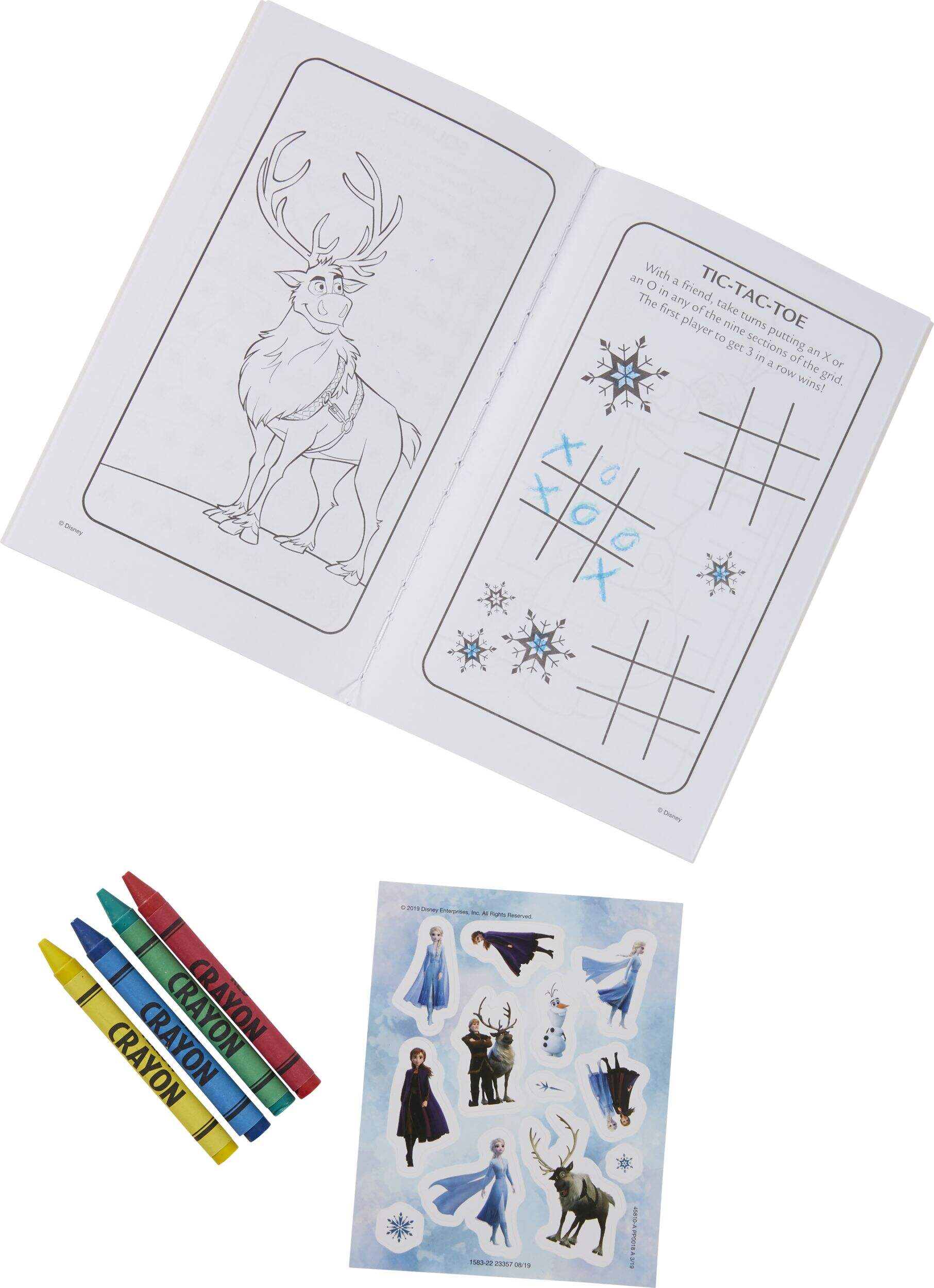 Each resealable activity pack comes with a 24-page coloring book, crayons, and one sheet of stickers featuring Anna, Elsa, Kristoff, Olaf, and their friends