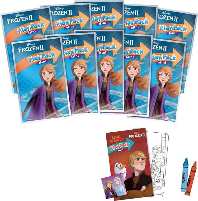 • Each play pack includes an eight-page activity book with a Kristoff and Olaf cover, 2 mini crayons and a sticker of their favourite Disney Princesses