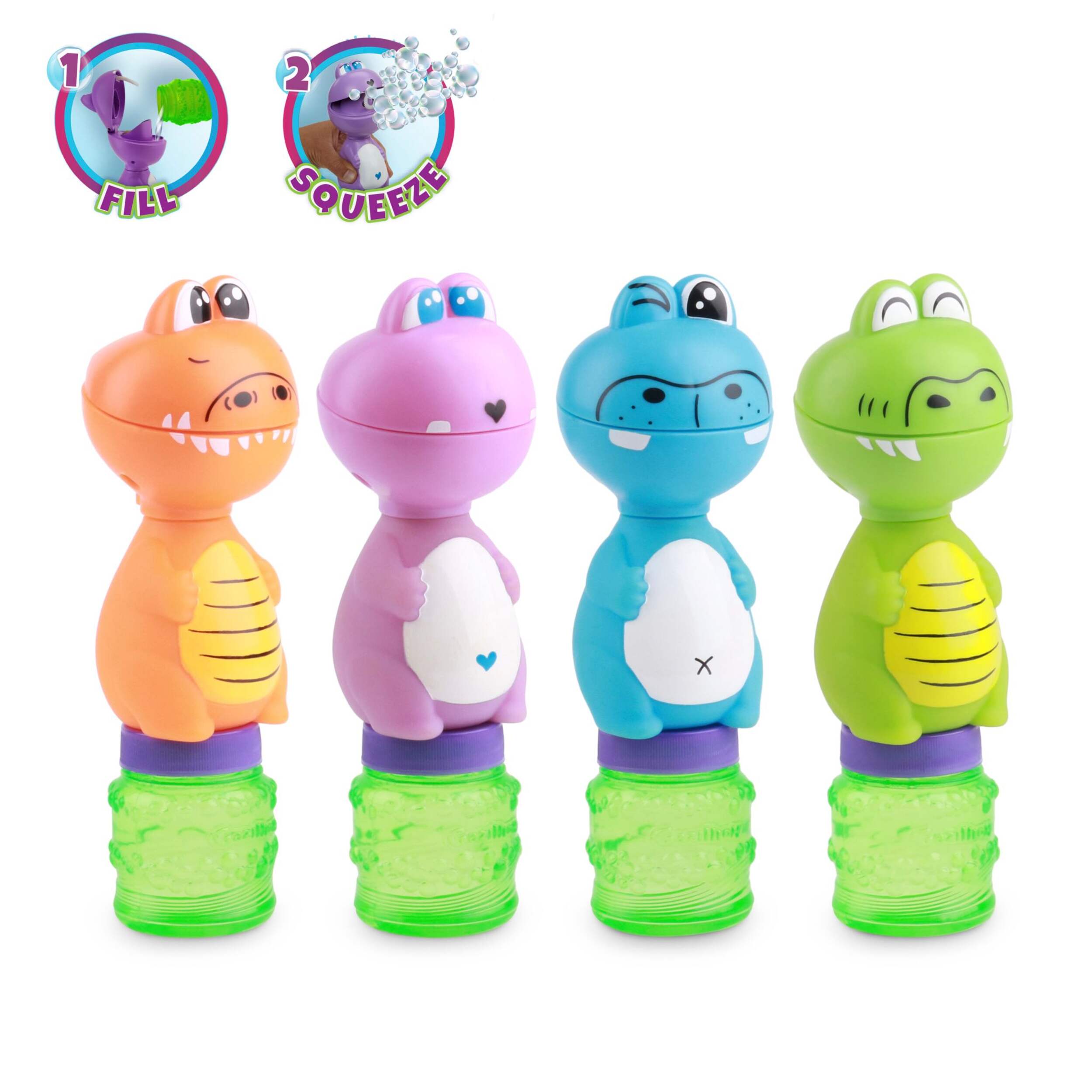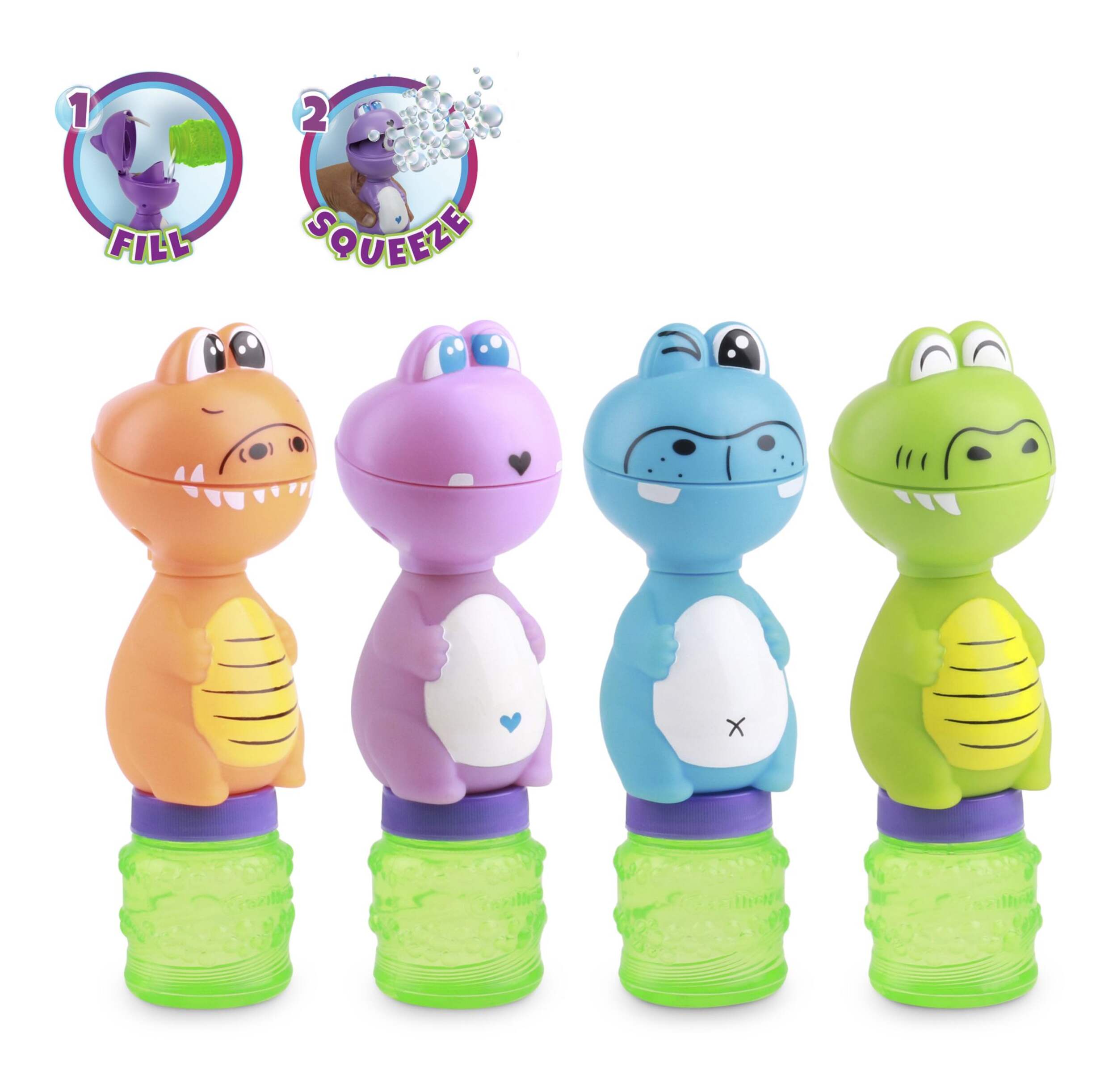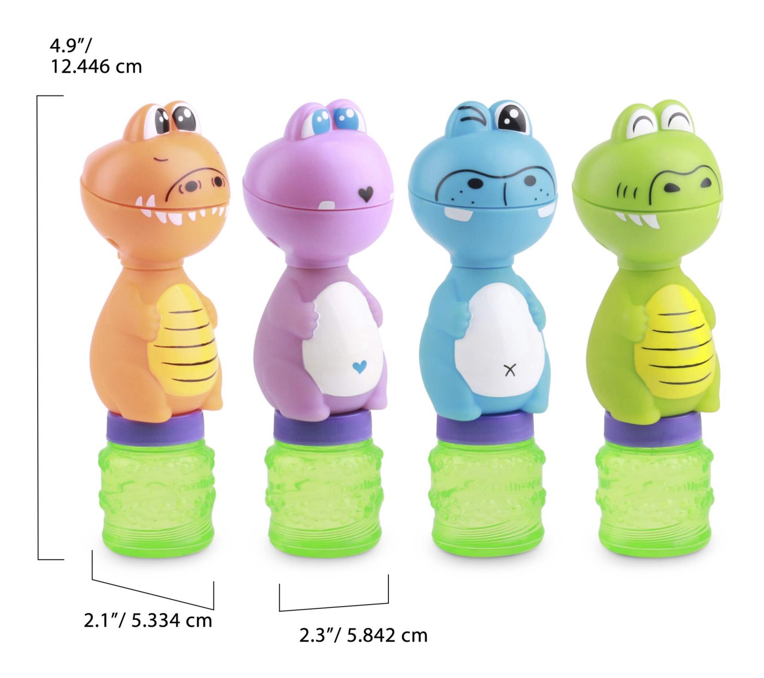 Each soft, squeezable character comes with a 2 oz (59 mL) of bottle of solution
