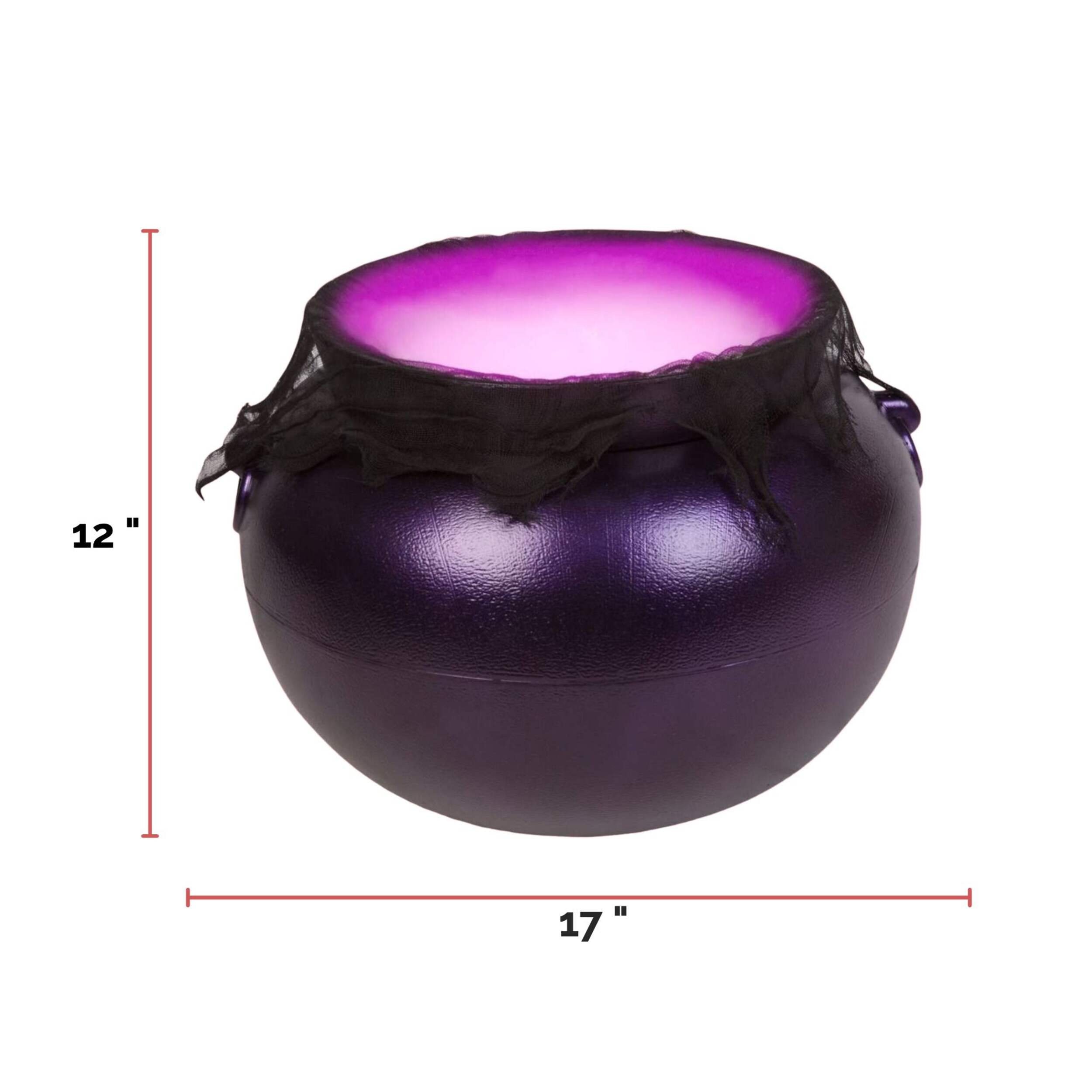 Make a spellbinding statement and create a spooktacular scene with the Animated Metallic Misting Cauldron. This outdoor decoration for Halloween features a metal cauldron that emits a ghostly mist, setting the perfect ambiance for your haunted festivities. The interior illuminates with a flickering light when activated, giving the impression of a bubbling brew. Place this purple and black cauldron atop your table or in your yard to instantly transform your space into a bewitching backdrop. Crafted with weather-resistant materials, this mystical misting cauldron decoration for Halloween will cast a haunting glow wherever it's displayed.