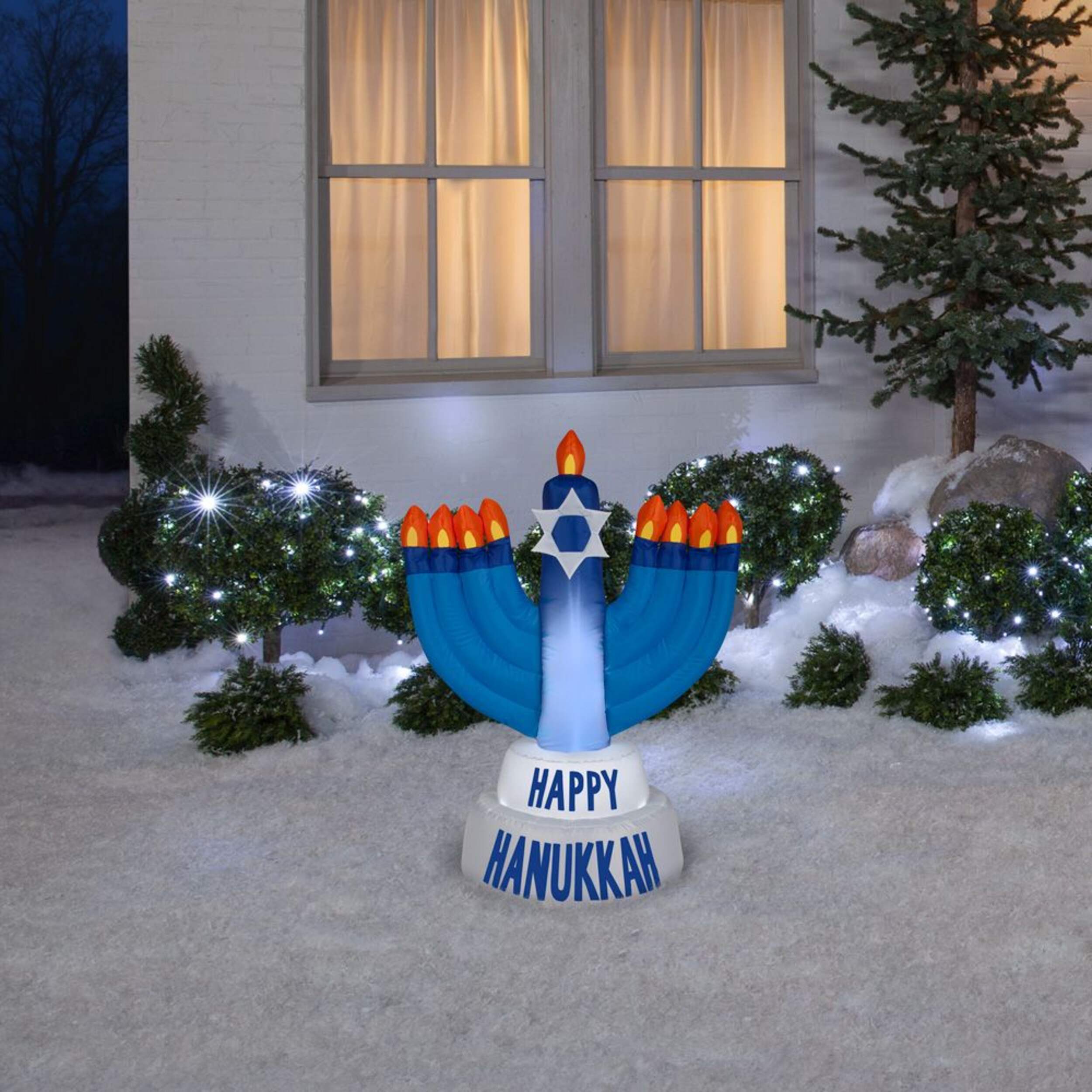 • Greet guests and passersby with this Inflatable Happy Hanukkah menorah