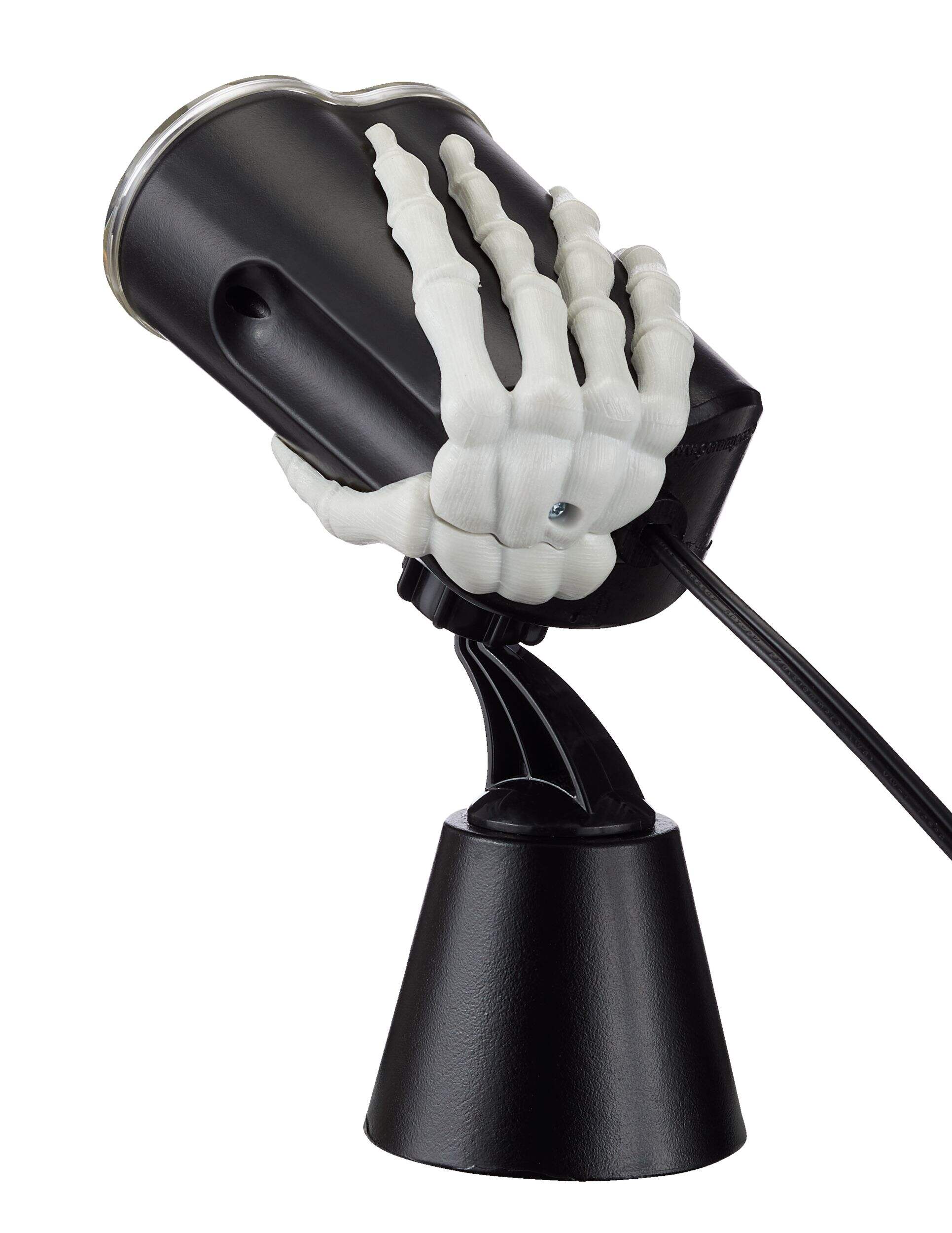 The Gemmy Skeleton LED Moving Hands Silhouette Projection features projected reaching hands that appear to be clawing towards you
