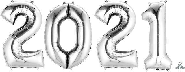 Go classic with a "2021" balloon bouquet by inflating the balloons with helium and attaching them to a weight using curling ribbon (sold separately)