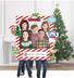 Plastic frame features a red and white striped design with a space at the bottom to write personalized messages