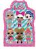 Pink pinata features popular L.O.L. Surprise! dolls including Queen Bee, Diva, and Rocker on a blue and white background with a sparkle-printed border