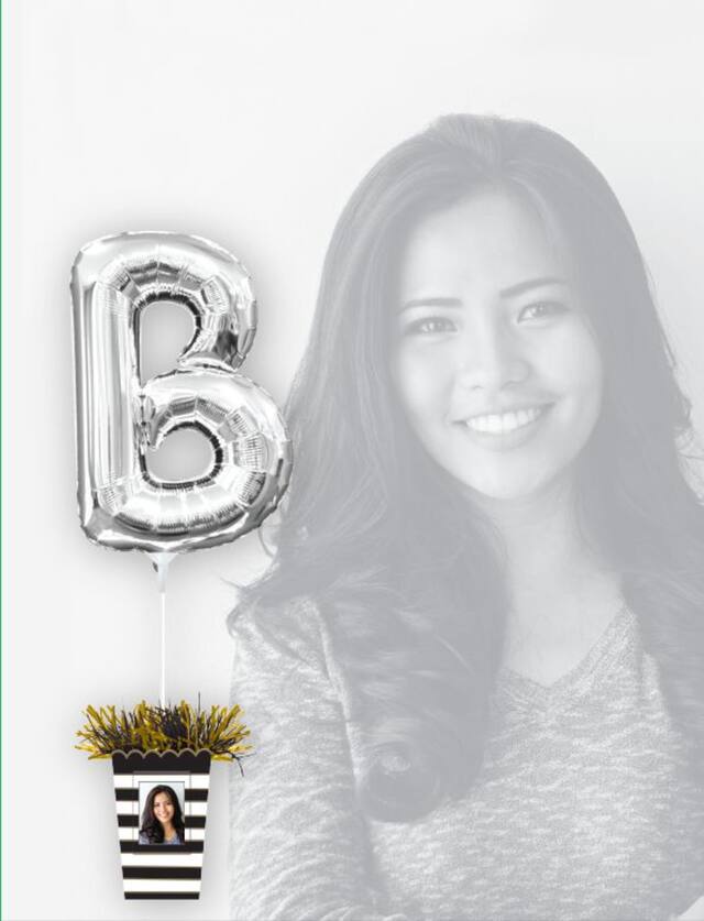 Features a frame attached to the front of it to insert pictures and a loop to attach balloons to (sold separately)