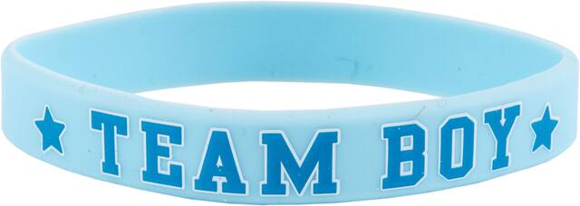 • Girl or Boy Gender Reveal Wristbands feature pink and blue rubber bracelets
