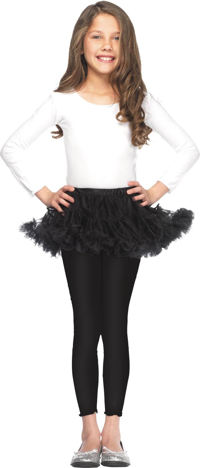 Features multiple layers of black tulle and a ruffled hem, and is held up by an elastic waistband
