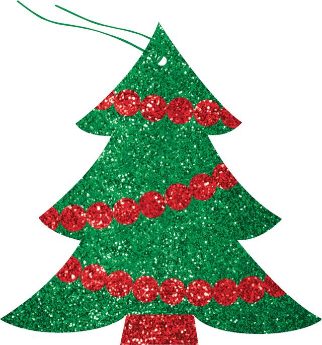 • These sparkly Christmas gift tags feature cutout images of stockings, Christmas trees, ornaments and snowflakes in red, green and white glitter