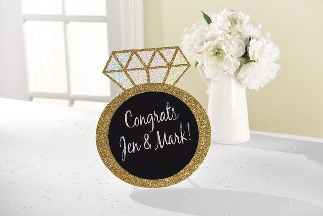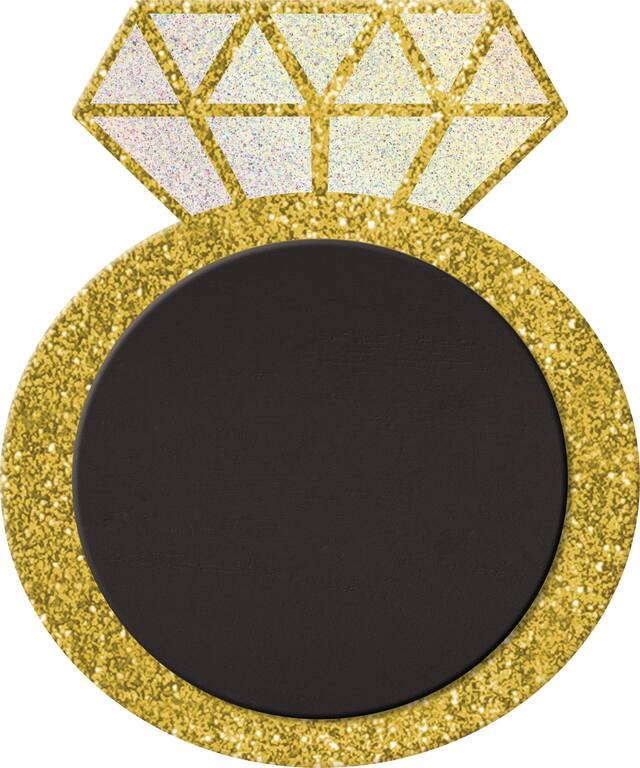 You may be interested in these similar products shown below.Glitter Diamond Ring Chalkboard Sign is shaped like an engagement ring and is covered in gold and white glitter