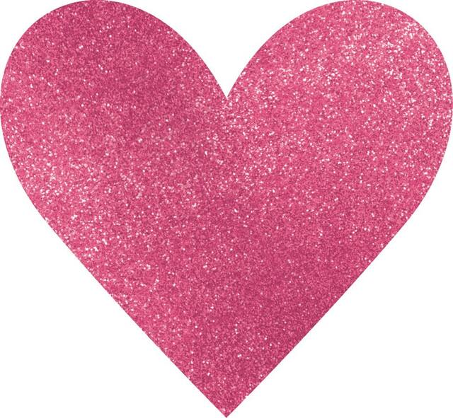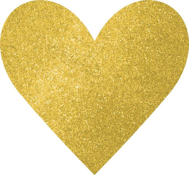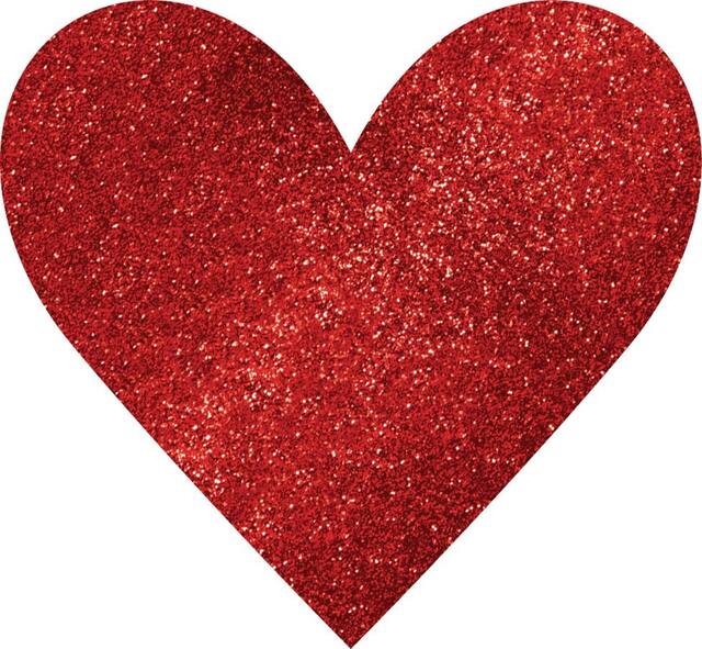 Two-sided hearts are covered in glitter on one side for a touch of glam
