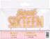 Molded birthday candle is printed with Sweet Sixteen in glittery gold cursive letters on a blush pink background so it serves as the perfect complement to gold and pink party decor