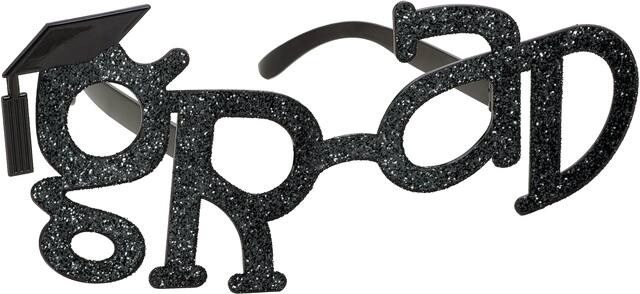 You may be interested in these similar products shown below.Glitter Graduation Glasses feature a plastic frame shaped into the word "Grad" and adorned with a jaunty mortarboard and tassel detail