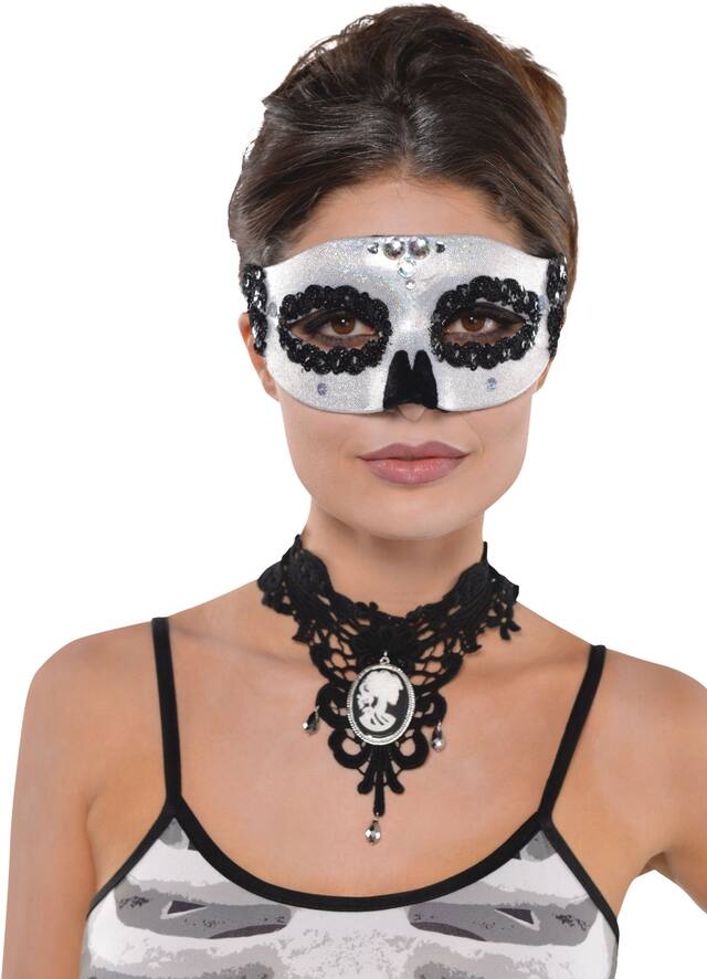 You may be interested in these similar products shown below.Be the star of the party with this Glitter Silver Skull Masquerade Mask that features a sparkly skull design