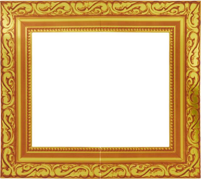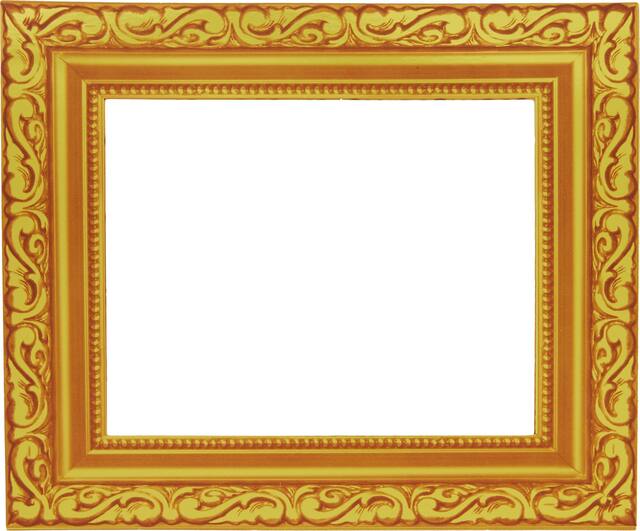 Gold tone cardstock props are designed to look like ornate oval and rectangular picture frames