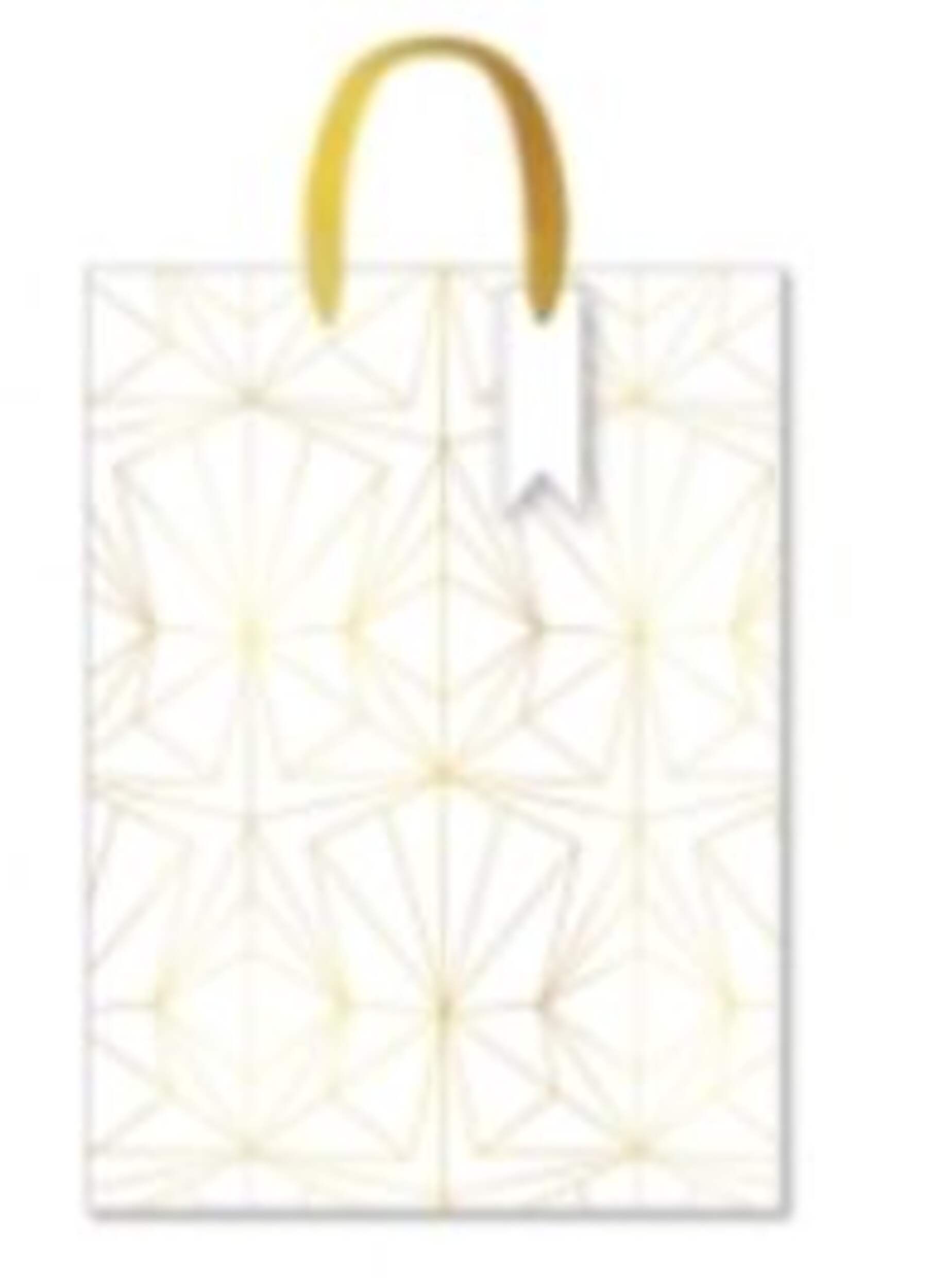 You may be interested in these similar products shown below.Make your gifts stand out with this elegant Gold Geometric Gift Bag. Perfect for birthdays, weddings, or baby showers, this extra-large gift bag features a stylish geometric design on a white background. Its sturdy construction ensures your presents are beautifully presented and securely held.