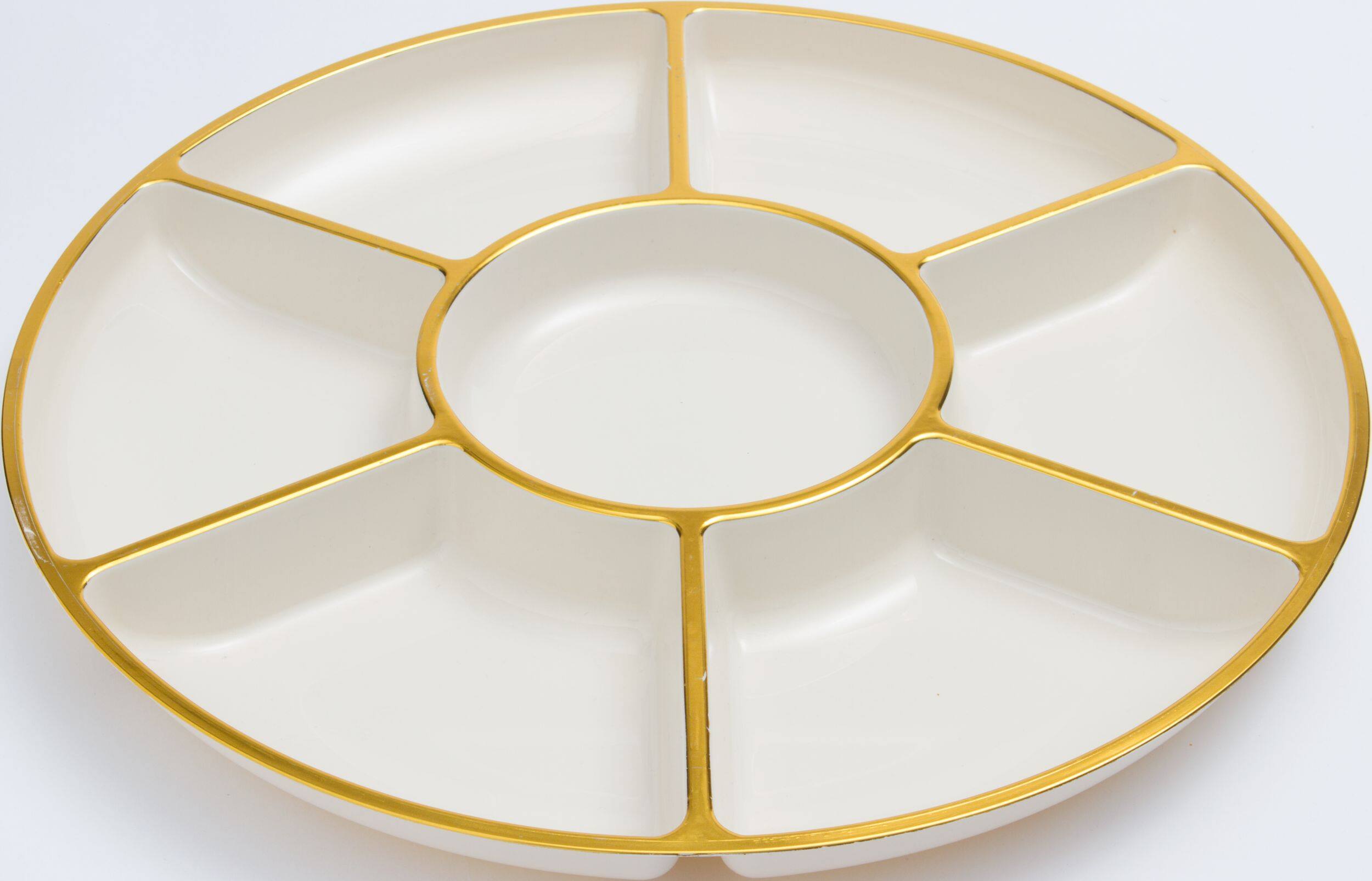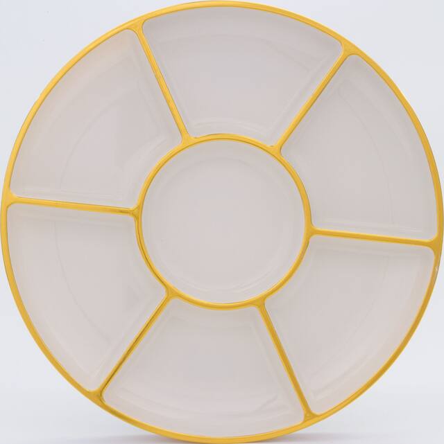 You may be interested in these similar products shown below.Bring a traditional touch to your table with a Trimmed Cream Plastic Sectional Platter