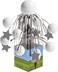Features a cutout of a golf ball at the top and then cascading foil strips with golf balls and stars at the end