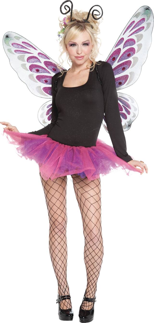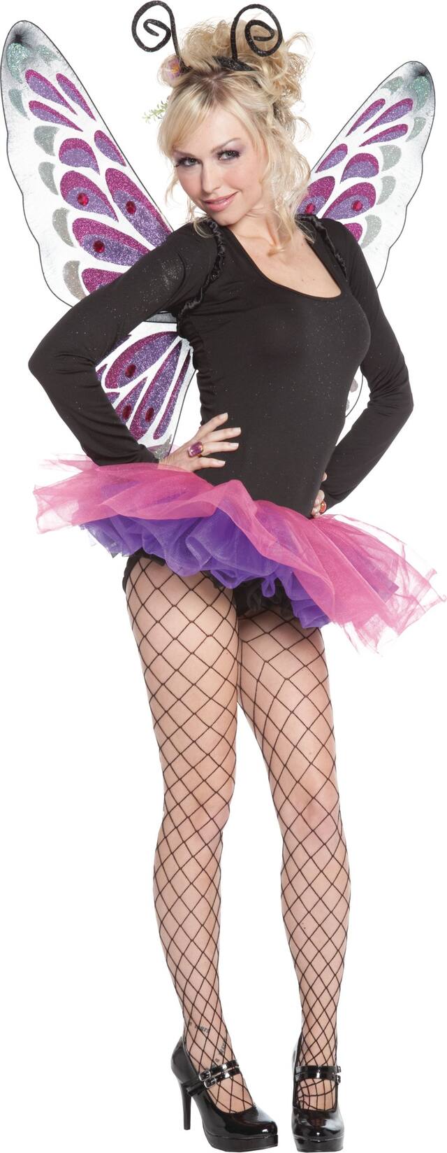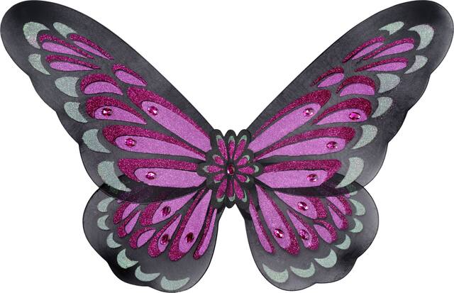 Slip on these Butterfly Wings and metamorphose into something amazing. Gothic Jewel Butterfly Wings feature a monarch butterfly wing shape in glittering pink and lavender with grey edging and bejeweled teardrop accents. A matching daisy design anchors the center where the Butterfly Wings fit together. Gothic Jewel Butterfly Wings are made of 100% nylon and attach by means of elastic bands that fit over the shoulders.