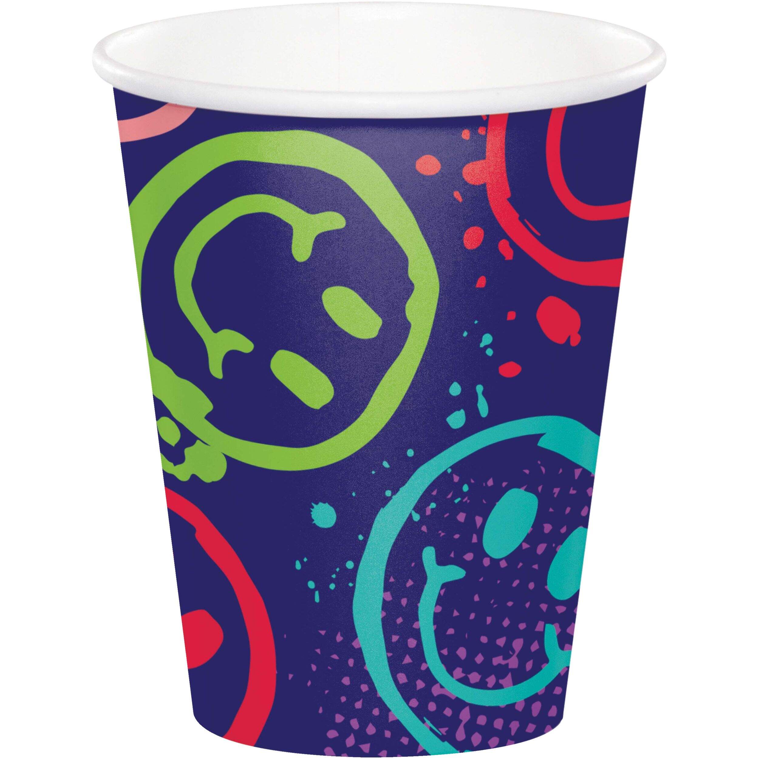 Add a splash of fun to your birthday celebration with Graffiti Party Smiley Paper Disposable Cups. These vibrant party cups, adorned with colorful 90s graffiti smiley faces and paint splatter, are perfect for serving both hot and cold beverages. Ideal for any festive occasion, these disposable paper cups bring a playful touch to your party decor.