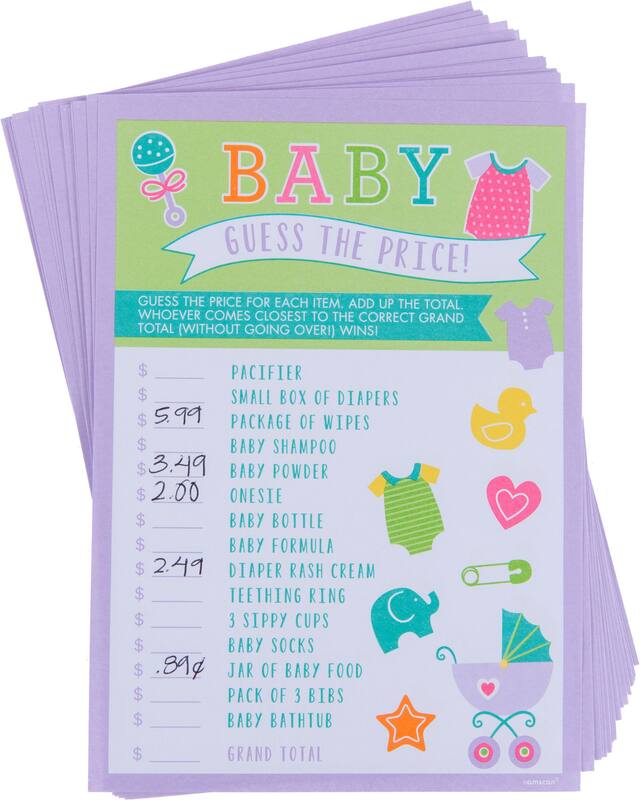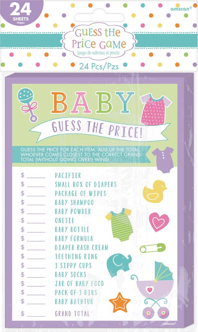 You may be interested in these similar products shown below.Guess the Price Baby Shower Game features cards that list must-have items
