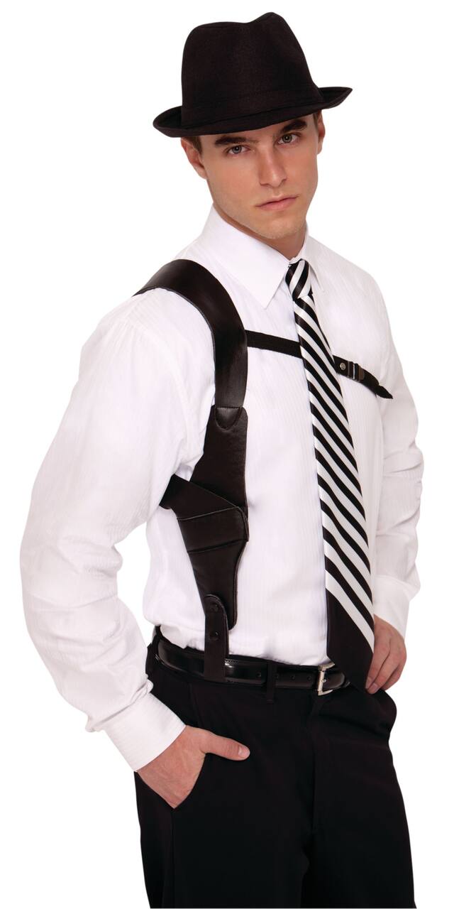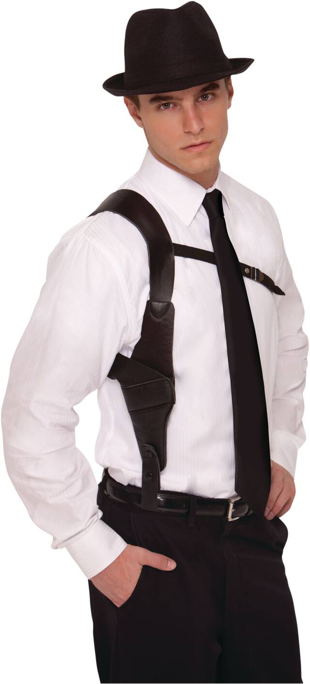 The Gun Holster Halloween Costume gets you party-ready with minimum effort. An undercover cop or a personal detective - this Halloween costume gives you your desired look. The gun holster features a holster and attached straps for standard shoulder-clutch styling. Wear a button-down shirt and a matching black hat to get that perfect secretive look at the party!