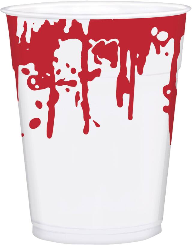 Cups are white with a wraparound print of dripping blood