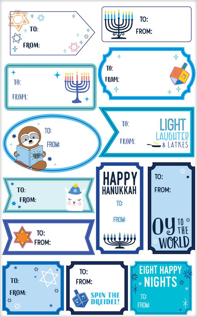 • With classic designs like dreidels, menorahs, and Stars of David, these peel-and-stick gift tags come in all shapes and sizes to fit your gifting needs