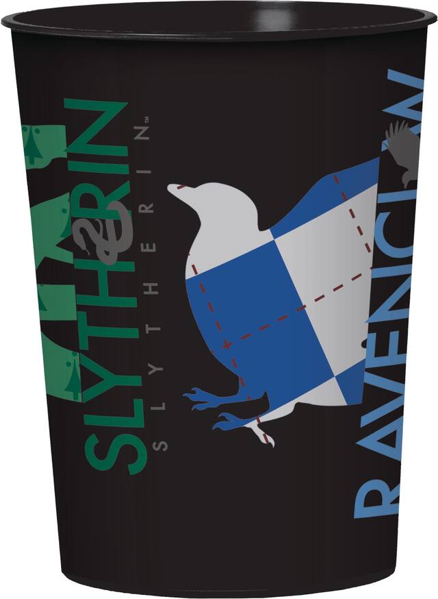 Essential for a Harry Potter party, this durable plastic cup features the logos and colours of the four houses of Hogwarts: Gryffindor, Hufflepuff, Ravenclaw, and Slytherin