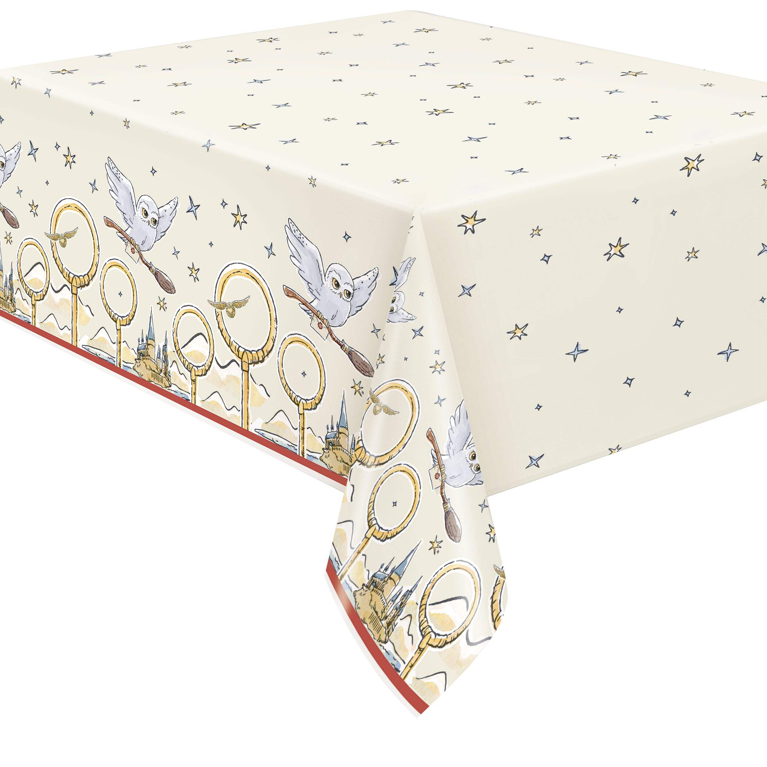 Measuring 84" x 54" and featuring a fun Quidditch pattern, this plastic table cover is sure to bring a little magic to your Harry Potter birthday party