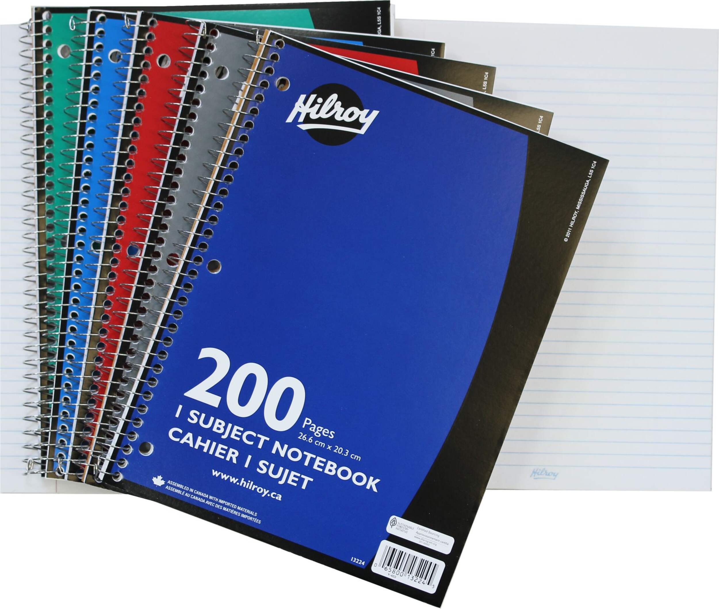 You may be interested in these similar products shown below.Keep yourself organized with the Hilroy Coil 1-Subject Wide Ruled Notebook. This notebook is 3-hole punched, making it ideal for school, home and office use. The attractive, paper covers come in fashionable assorted colours. This 8 x 10.5 inch spiral notebook features coil wire bindings to help it to lay flat when open. Each 1-subject notebook contains 100 sheets (200 pages) of quality, wide-ruled white paper. Hilroy is the brand for today’s busy corporate offices and home offices.