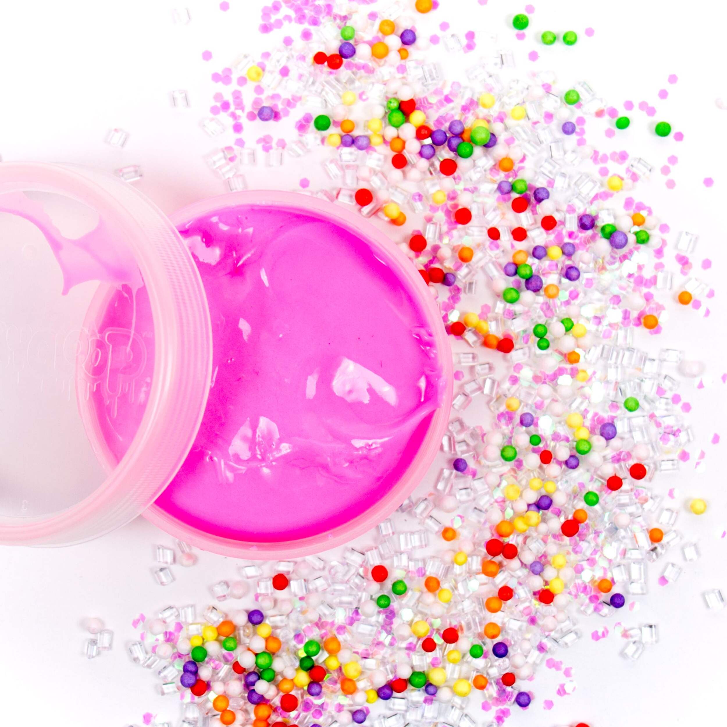 Simply remove from the reusable storage container, add holographic glitter and chunky crystal beads, and prepare for an over the top sensory experience