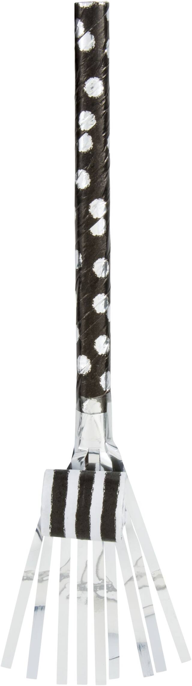Includes 8 each of fringe blowouts, party horns, paper blowouts, fringe squawkers, metallic squawker blowouts, and paper squawker blowouts