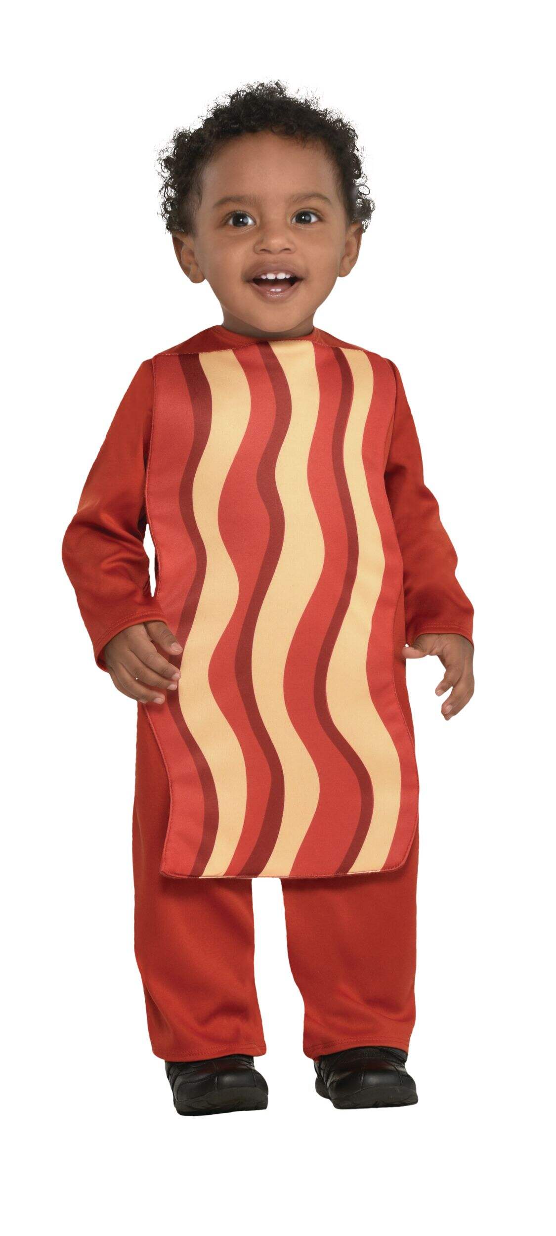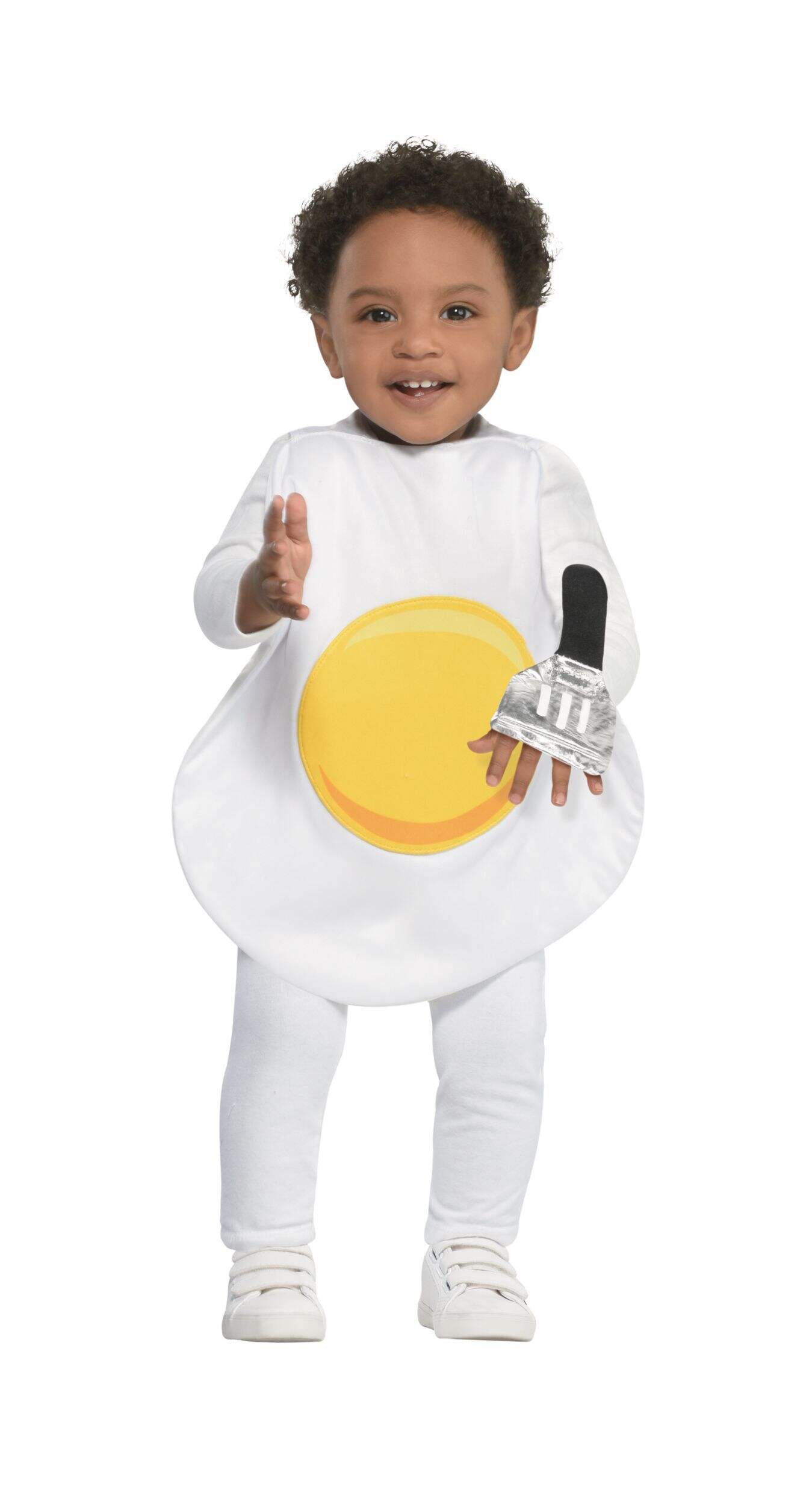 Costumes include a slice of bacon, a single sunny-side up egg, and a spatula hand rattle