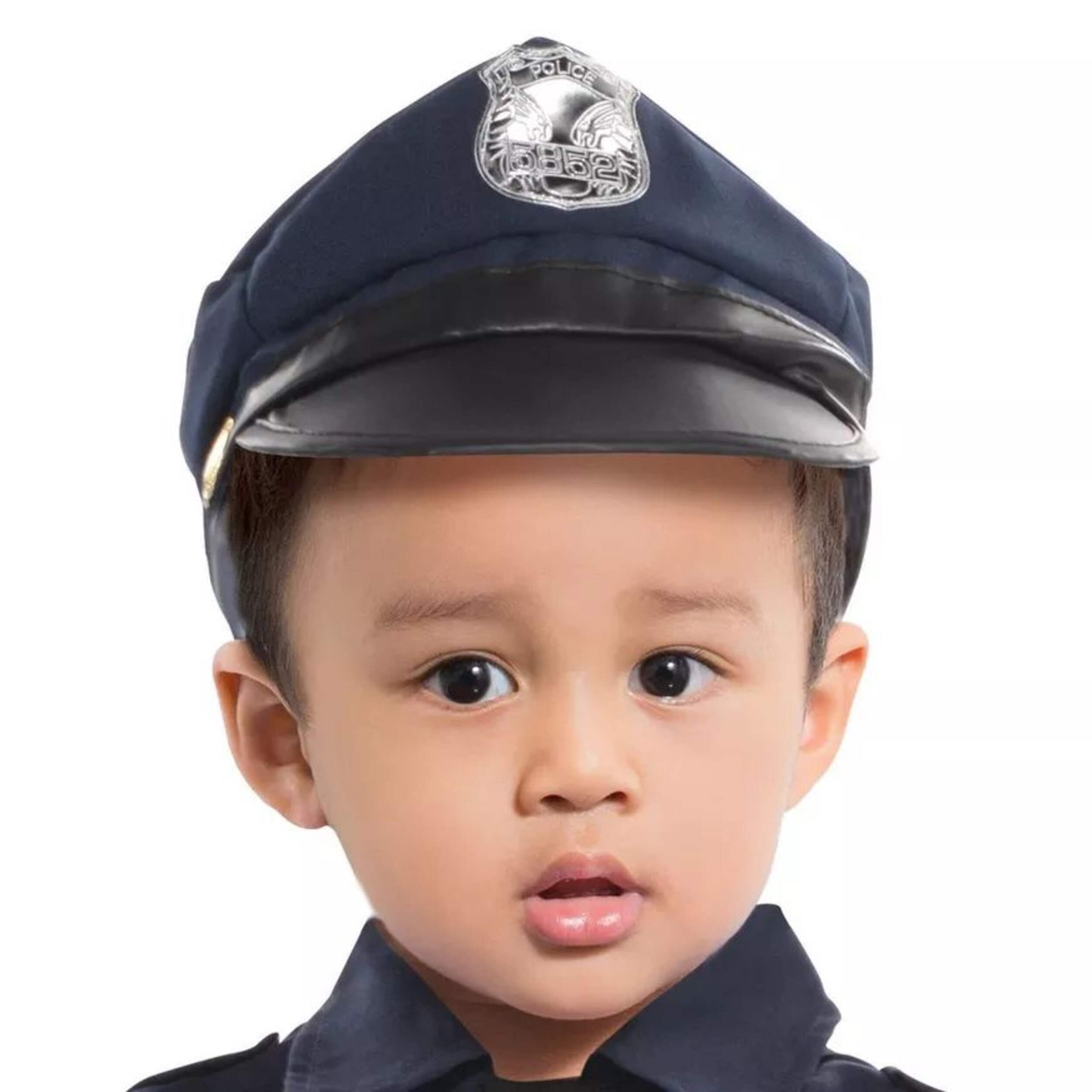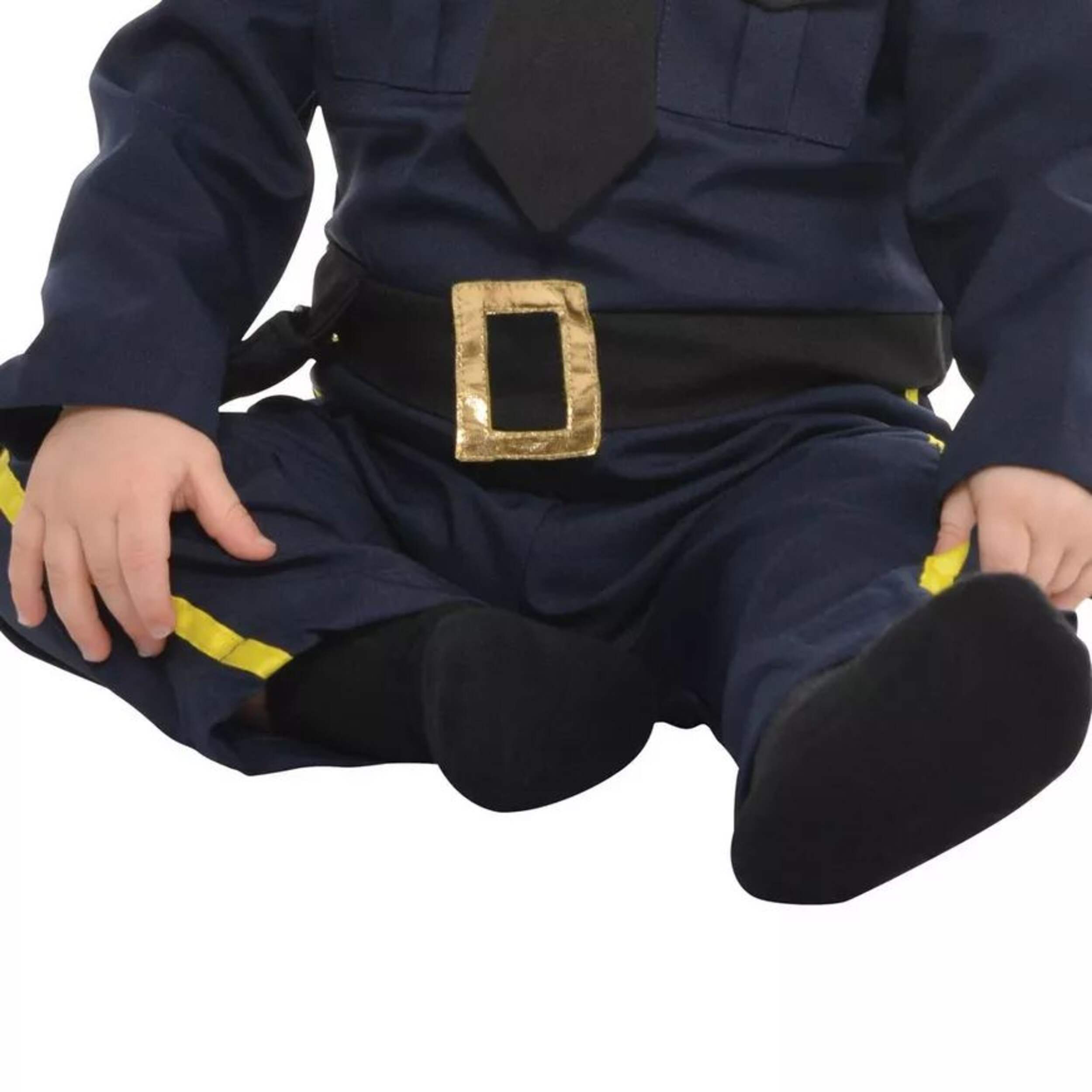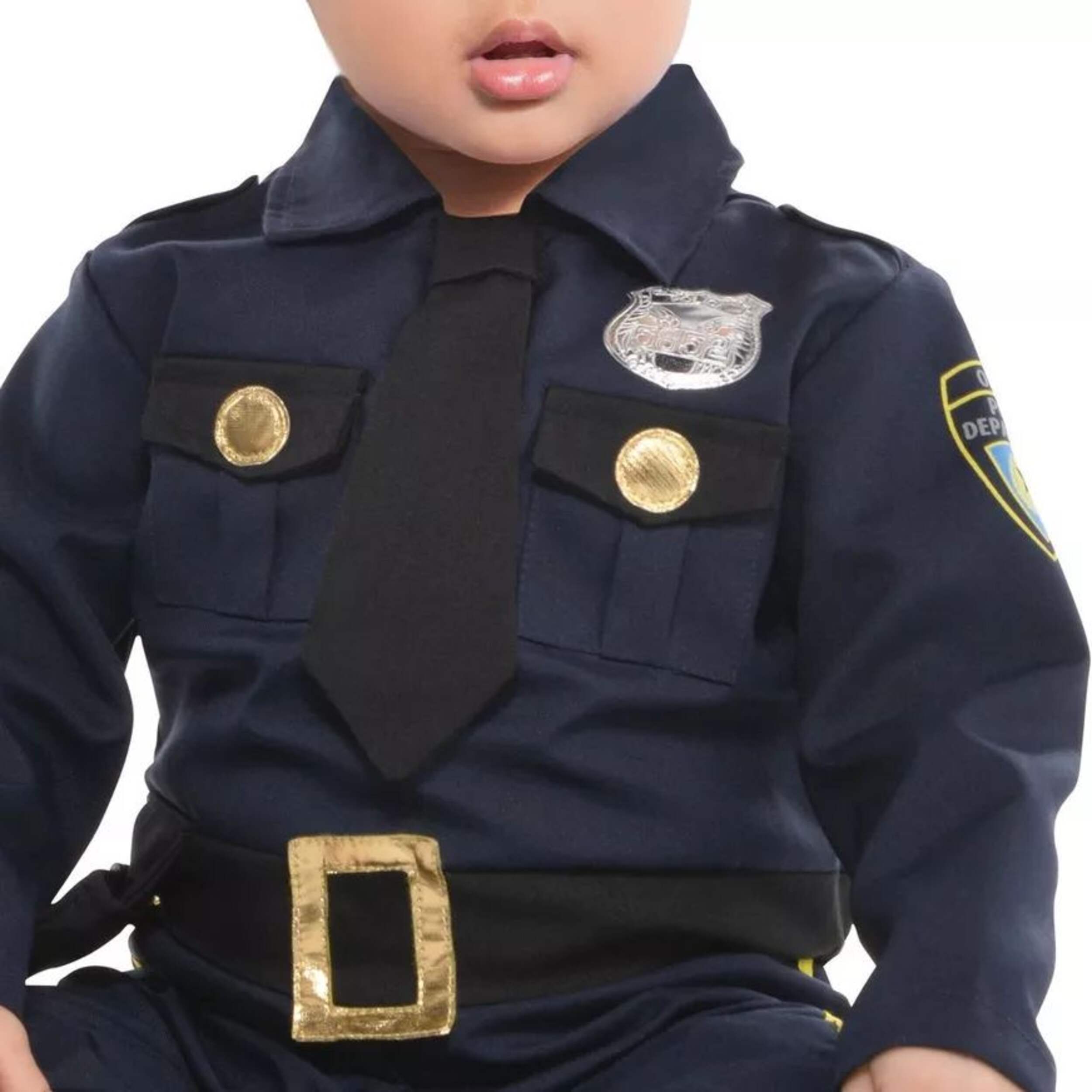 This adorable Infant Cop Police Officer Blue Jumpsuit from Amscan is the perfect outfit for your little officer to wear to Halloween events or costume parties. The navy blue one-piece jumpsuit features a faux holster tie and badge for an authentic police officer look, with the included policeman hat adding a fun finishing touch.