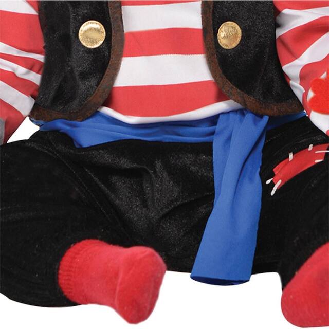 You may be interested in these similar products shown below.Baby Buccaneer Pirate Costume features a jumpsuit with red and white stripes an attached vest and complete with faux gold buttons and blue waist sash and black pants with a faux patch on one knee