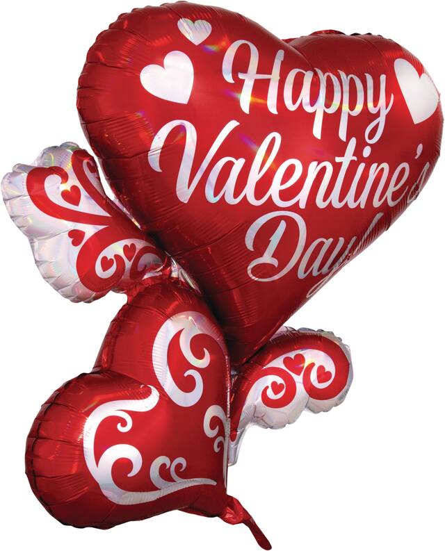 Red balloon features a big heart attached to a smaller one with the headline "Happy Valentine's Day"