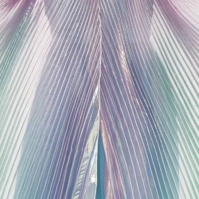 Glide gracefully into the Halloween party with the Iridescent Halloween Costume Wings. The fabric wings are ruched and feature loops on the ends to put your wrists through. Use these wings as part of a peacock costume, a fairy costume, or any other unique costume idea. You'll turn heads left and right on Halloween with these costume wings. The iridescent wings measure 67 x 35 1/2 inches and one size fits most teens and adults. For extended use, spot-clean only.