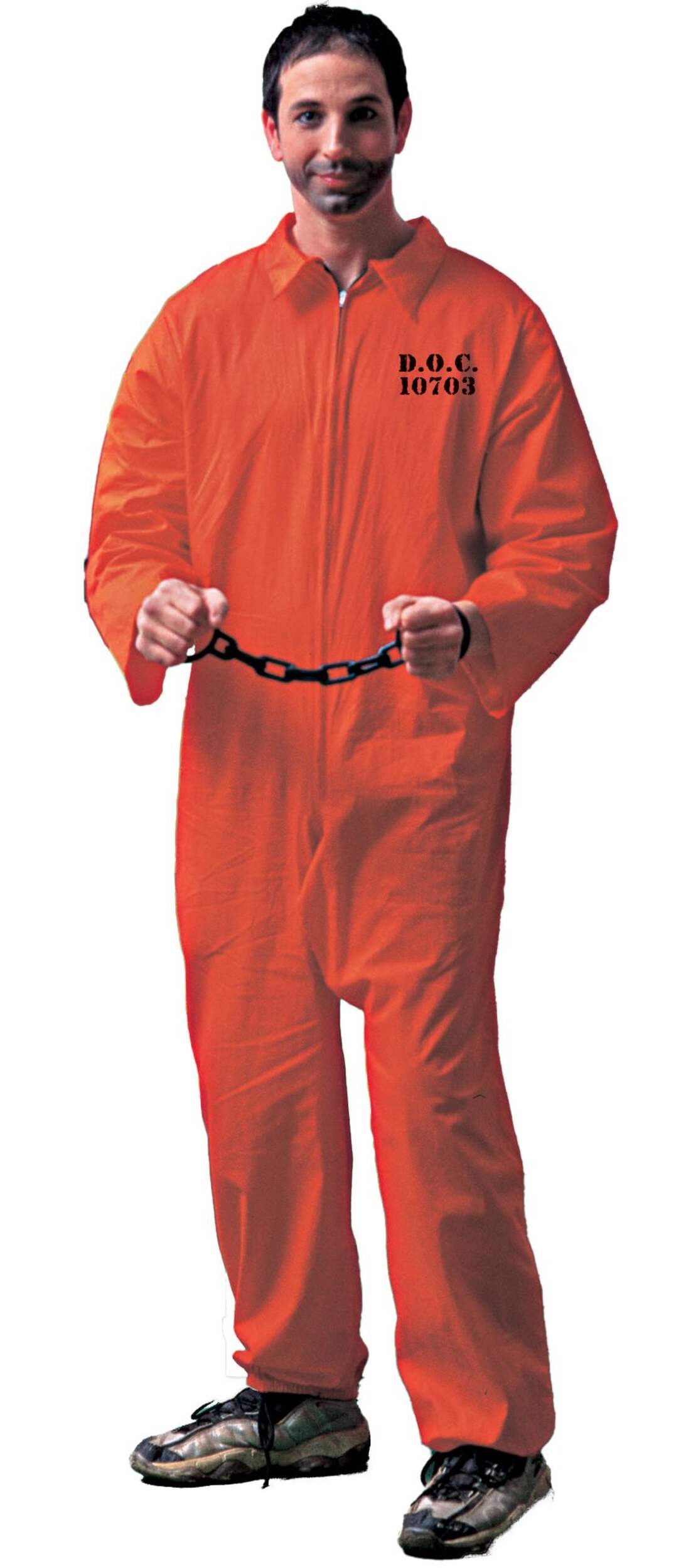 Stand out this Halloween with the Jailbird Jumpsuit Costume. This vibrant orange outfit, complete with 'Jail Bird' printed on the chest, is perfect for creating a memorable and fun look. The included handcuffs add an authentic touch to your ensemble.