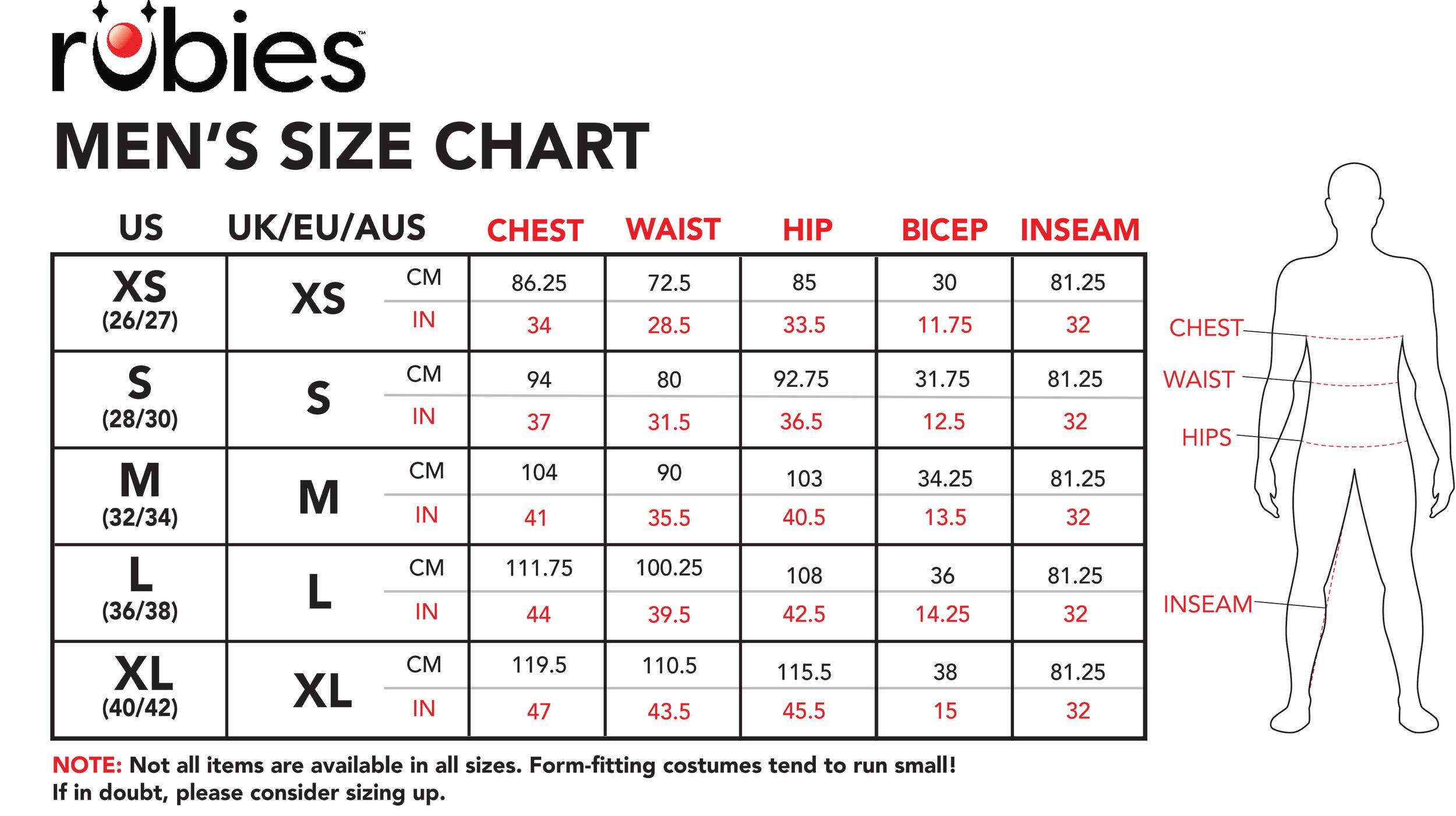 Universal standard sizing to fit most men