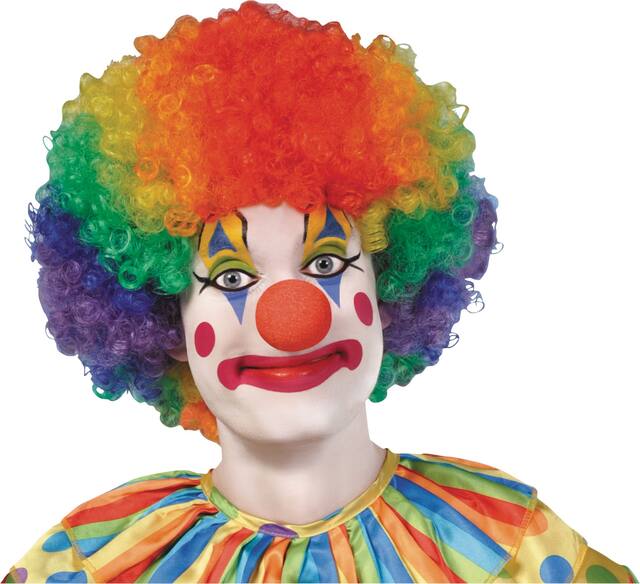 Go for the big laughs with our Jumbo Clown Wig! This multi-coloured Clown Wig features all the hues of the rainbow in an explosion of curly synthetic hair. Wig cap recommended (sold separately). One size Jumbo Clown Wig fits most circus characters.